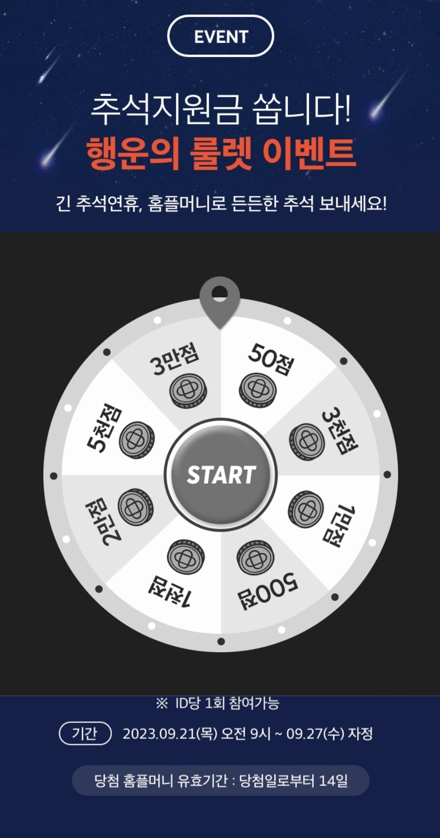 카테고리 없음 [홈플러스] 추석지원금 쏩니다 홈플머니 받으세요~ (~9.27) by 노랑킹콩 2023. 9. 22. 로그인 ⭕️ https://my.homeplus.co.kr/event/roulette?eventId=268 마이홈플러스마이홈플러스my.homeplus.co.kr 공유하기 게시글 관리 노랑킹콩의 여행 댓글