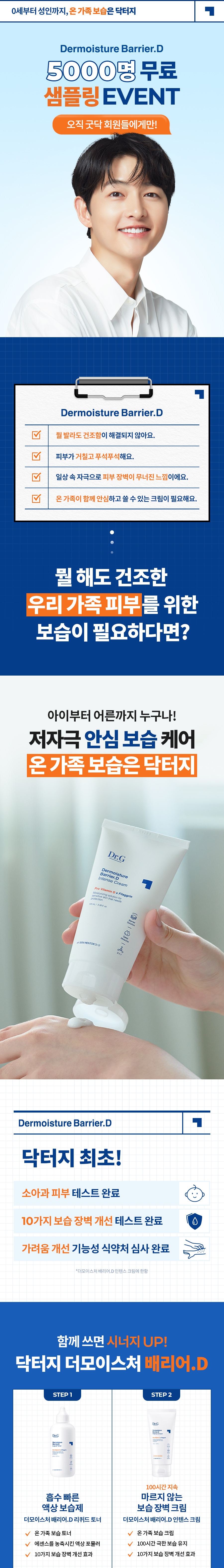0세부터 성인까지, 저자극 안심 보습 온 가족 보습은 닥터지! 오직 굿닥 회원들에게만 닥터지 더모이스처 배리어.D 2종의 체험 기회를 드립니다😊 ✔️샘플 키트 구성 - 흡수 빠른 액상 보습제,