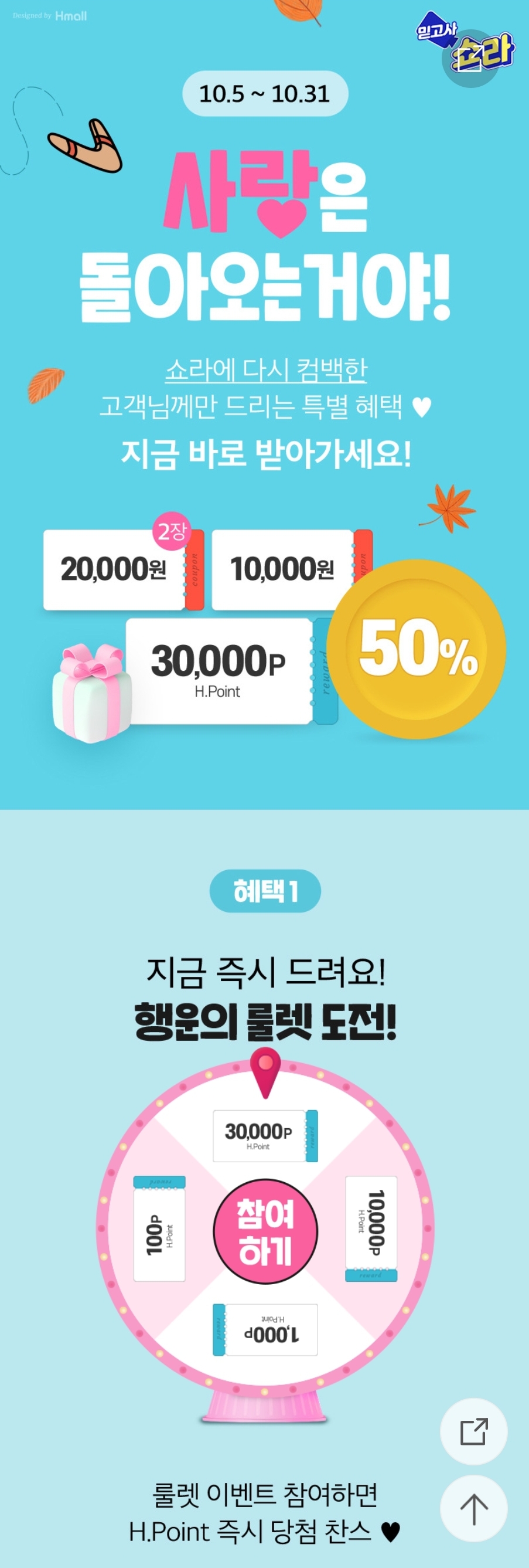 카테고리 없음 [H mall] 룰렛돌리고 최대 3만 포인트 받으세요 (~10.31) by 노랑킹콩 2023. 10. 5. 로그인 ⭕️ https://www.hmall.com/mevent/eva/evntView.do?prmoNo=00062948&utm_source=lms&utm_medium=banner&utm_campaign=retention - 현대Hmall포토상품평 작성하면 H.Point 바로 드려요♬ 지금 구경하러 가기>www.hmall.com 공유하기 게시글 관리 노랑킹콩의 여행 댓글
