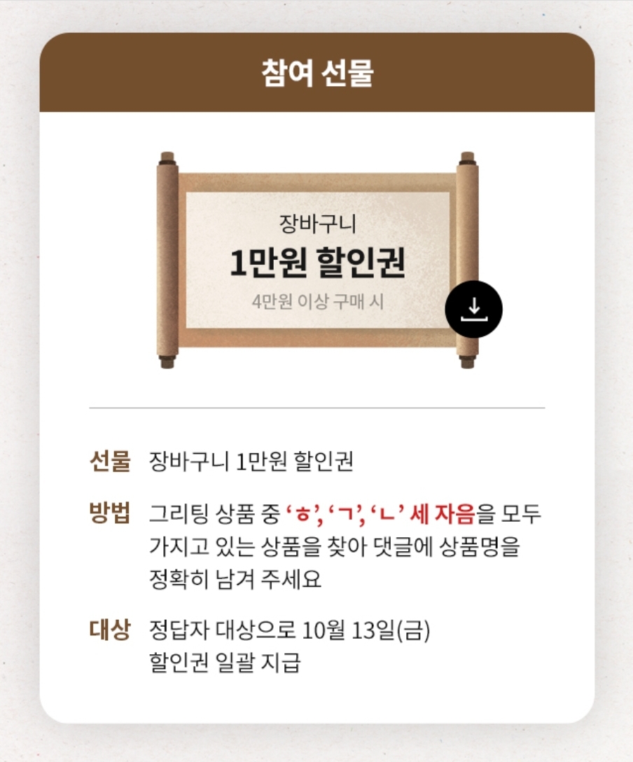 ㅎ,ㄱ,ㄴ 세 자음을 모두 가지고 있는 상품을 찾아 댓글에 상품명을 남겨주세요!