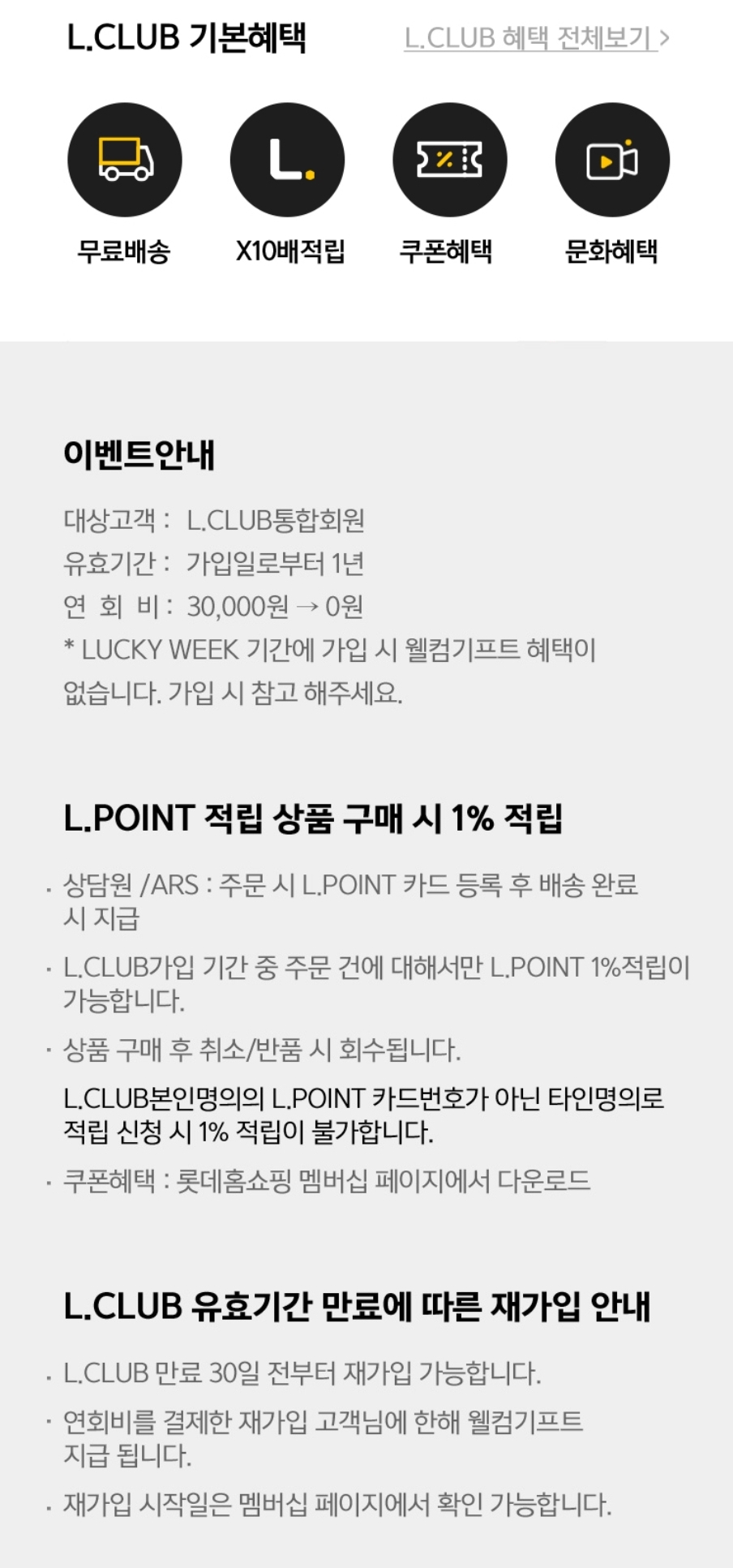 L.CLUB 가입하면 무료배송, x10배적립, 쿠폰혜택이 있는데 연회비 30,000원을 무료로 가입할 수 있으니 좋아요~^^