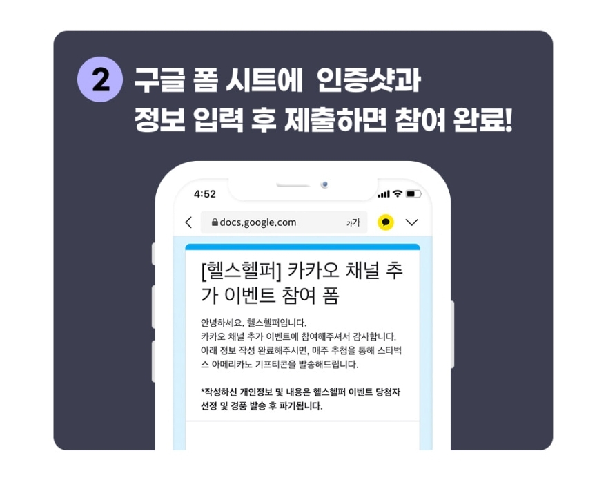 카톡 채널 추가하고 캡쳐 후 폼 작성만 하면 되요