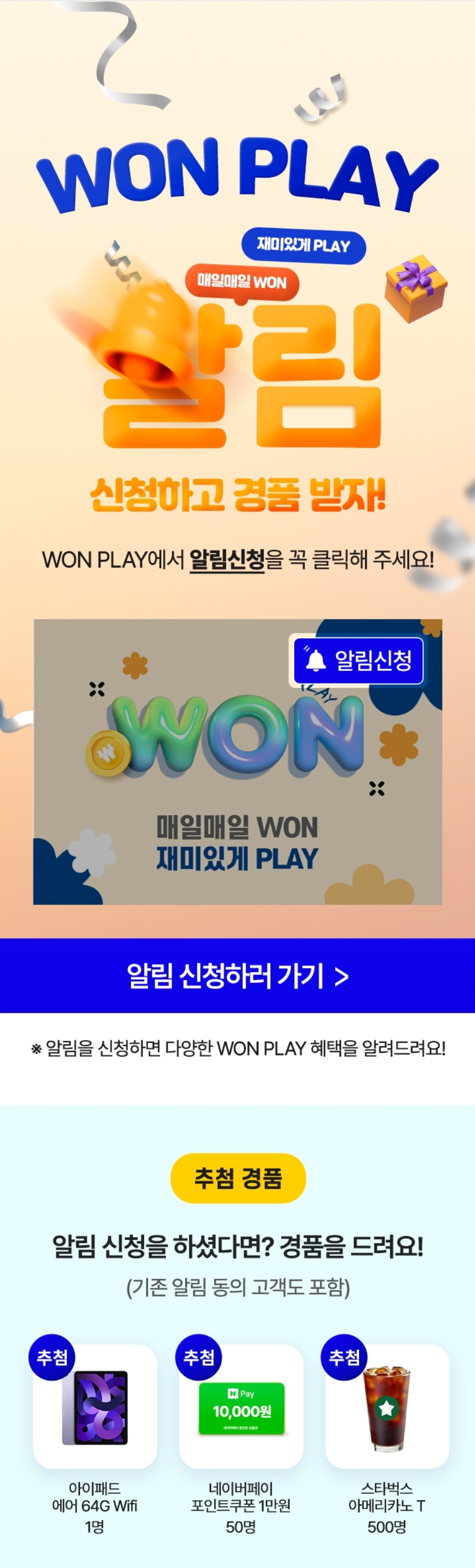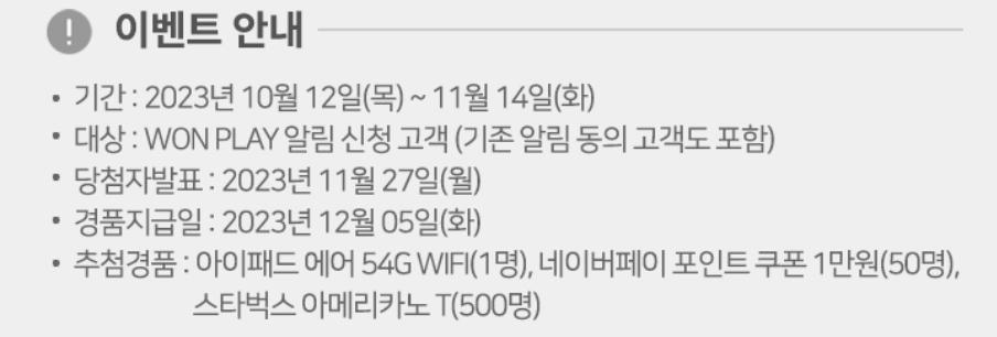 [우리은행] 이벤트명: WON PLAY 알림 신청하고 경품 받으세요!