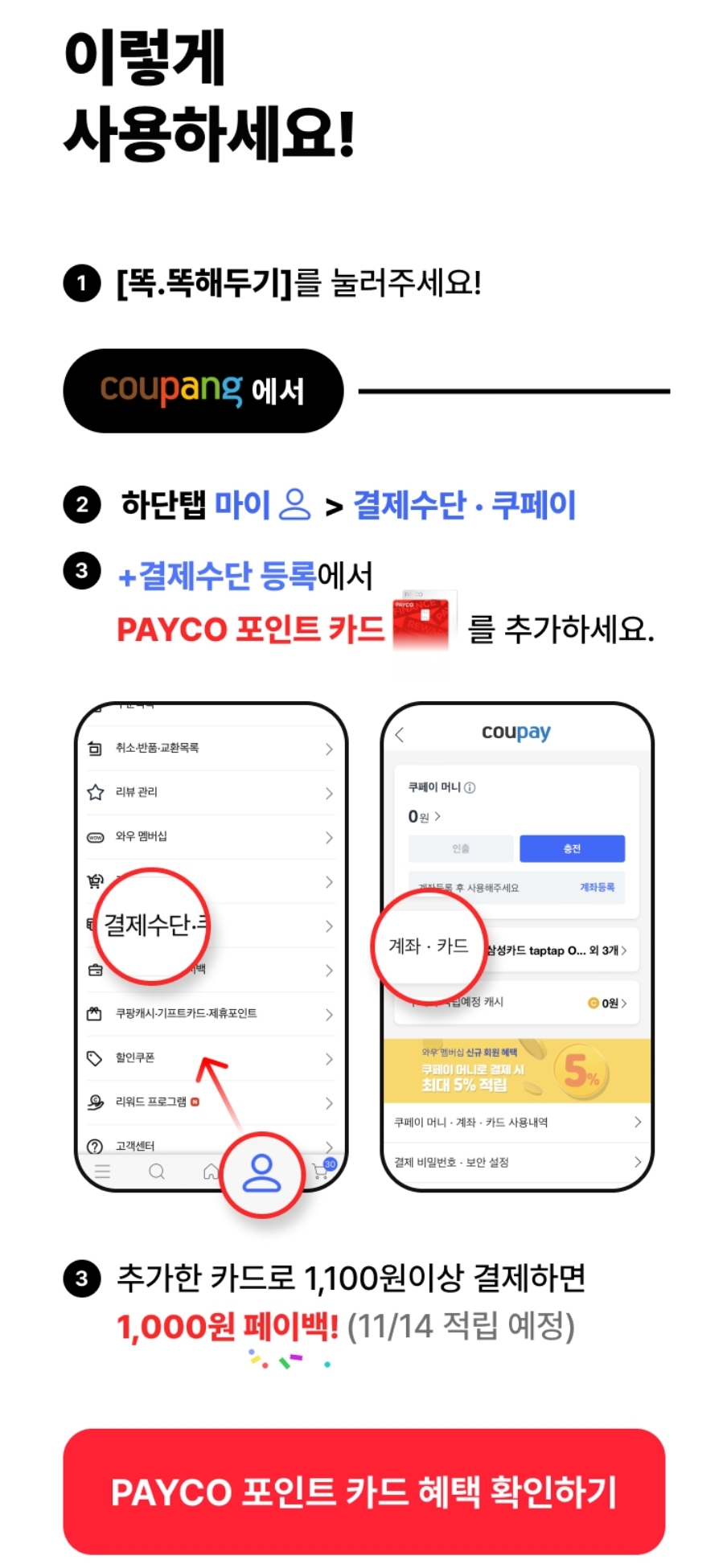 결제 금액이 1100원 이상, 페이코 실물 포인트 카드로 결제건만 가능해요!