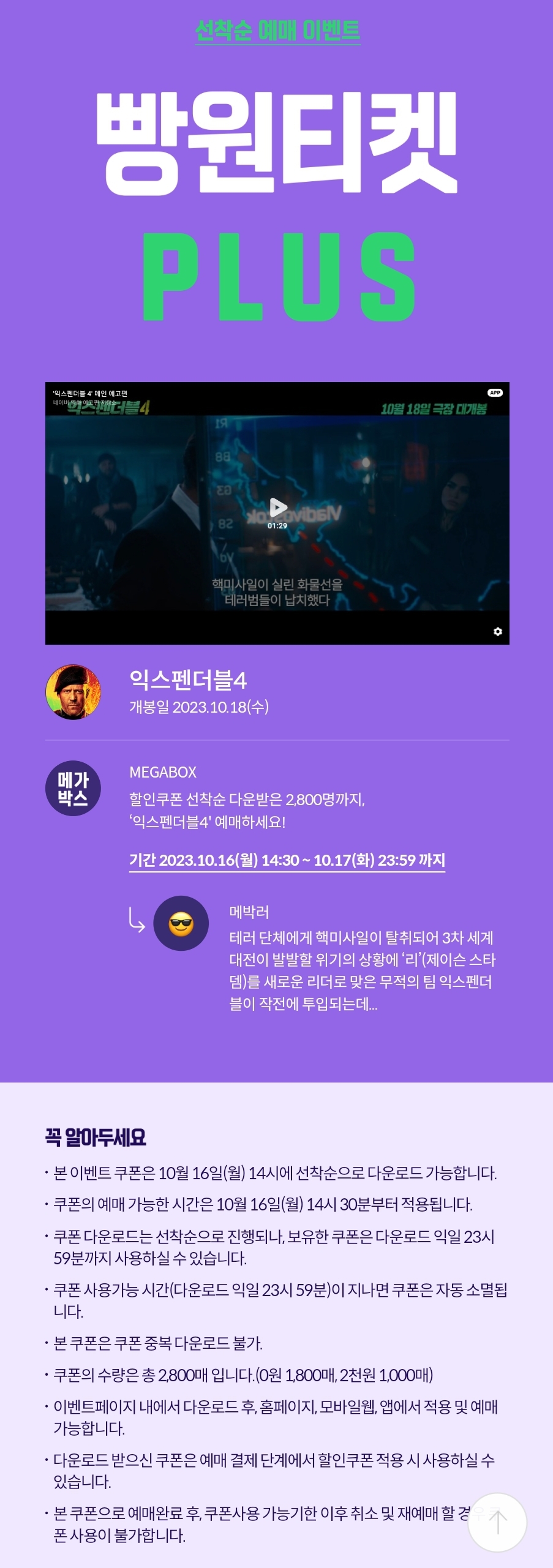 [메가박스][익스펜더블4] 선착순 빵원티켓 ➕