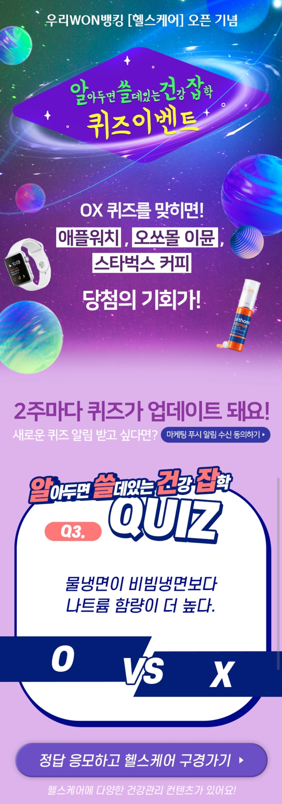 [우리은행] 이벤트명: 알쓸건잡! 헬스케어 퀴즈 이벤트