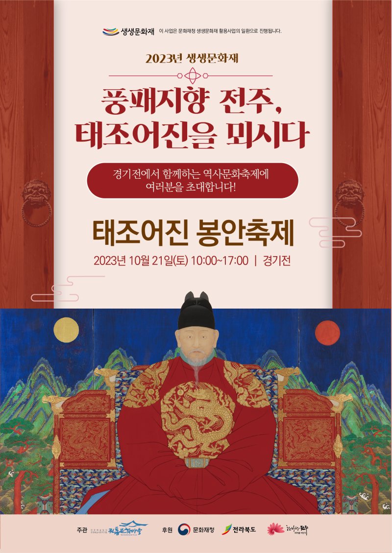 전주의 역사와 조선왕실의 문화를 엿볼 수 있는 '태조어진 봉안축제'가 21일(토) 오전 10시부터 오후 5시까지 전주한옥마을 경기전 및 오목대, 이목대에서 진행됩니다.