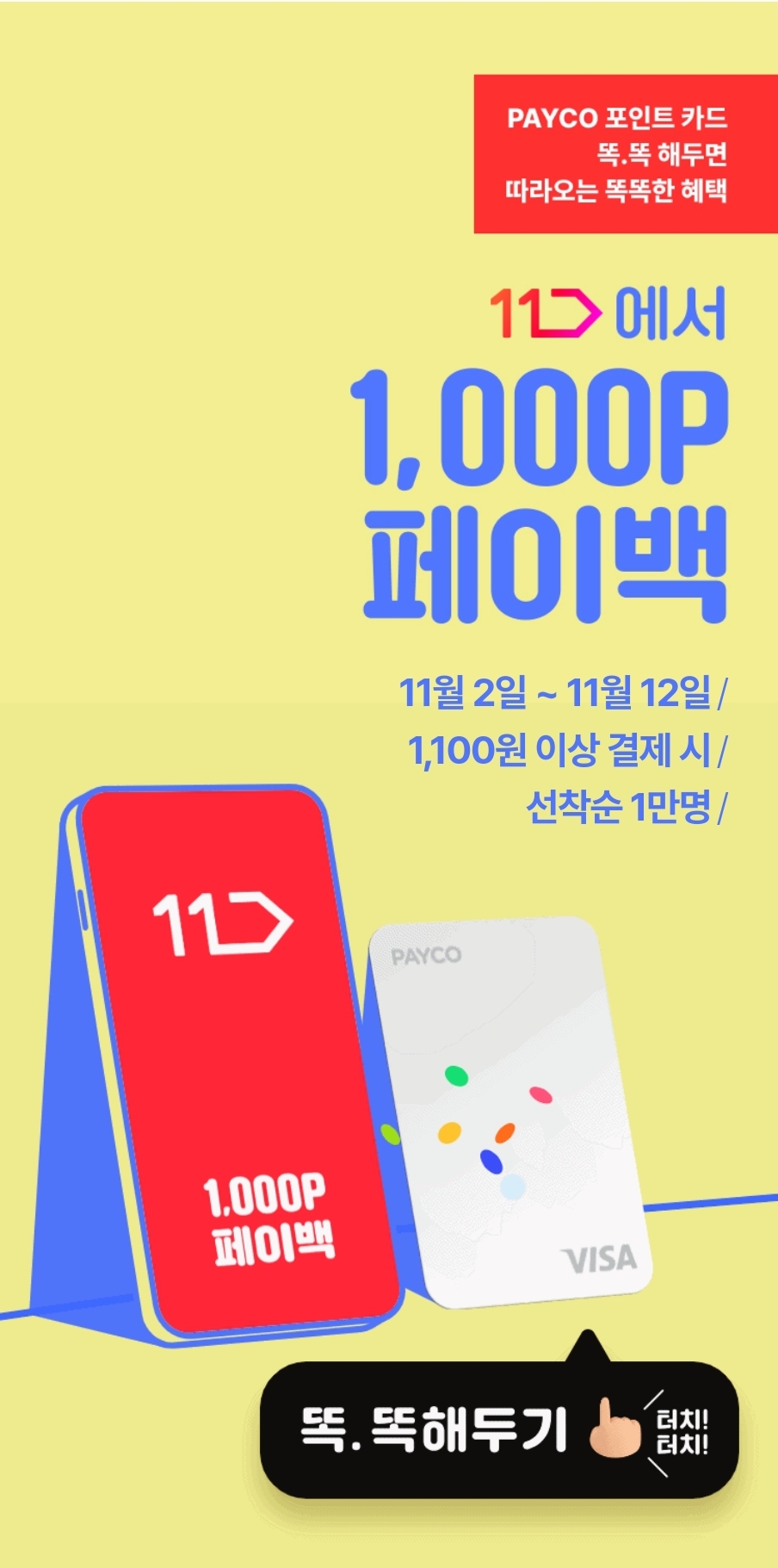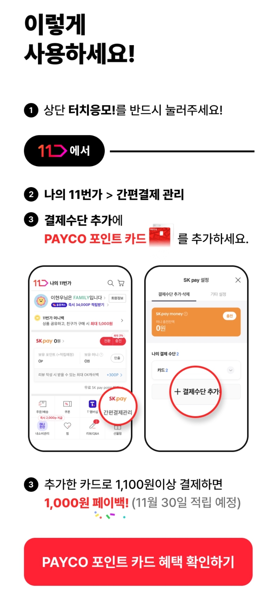 결제 금액이 1100원 이상, 페이코 실물 포인트 카드로 결제건만 가능해요!