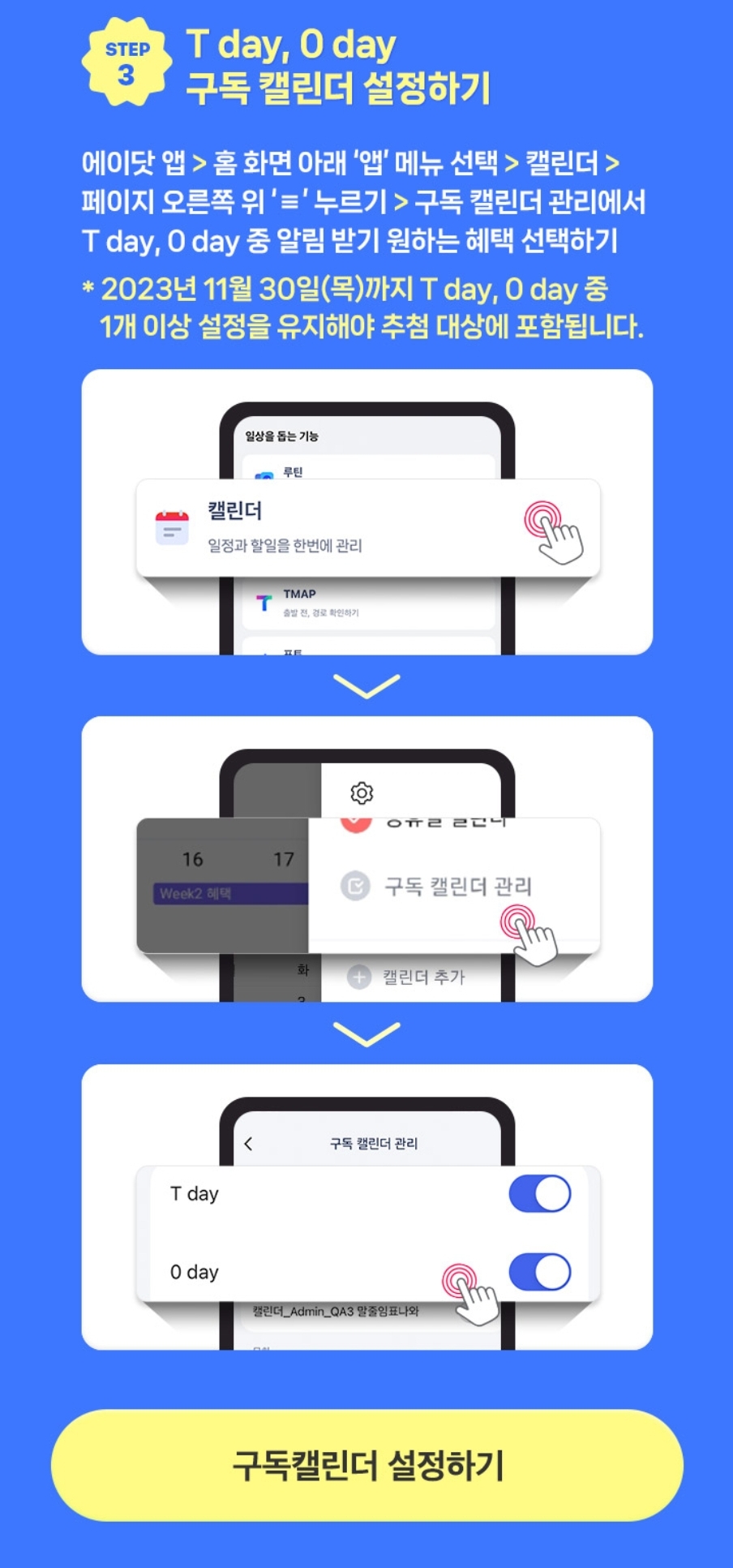 11월 T day, 0 day 구독 캘린더 이벤트