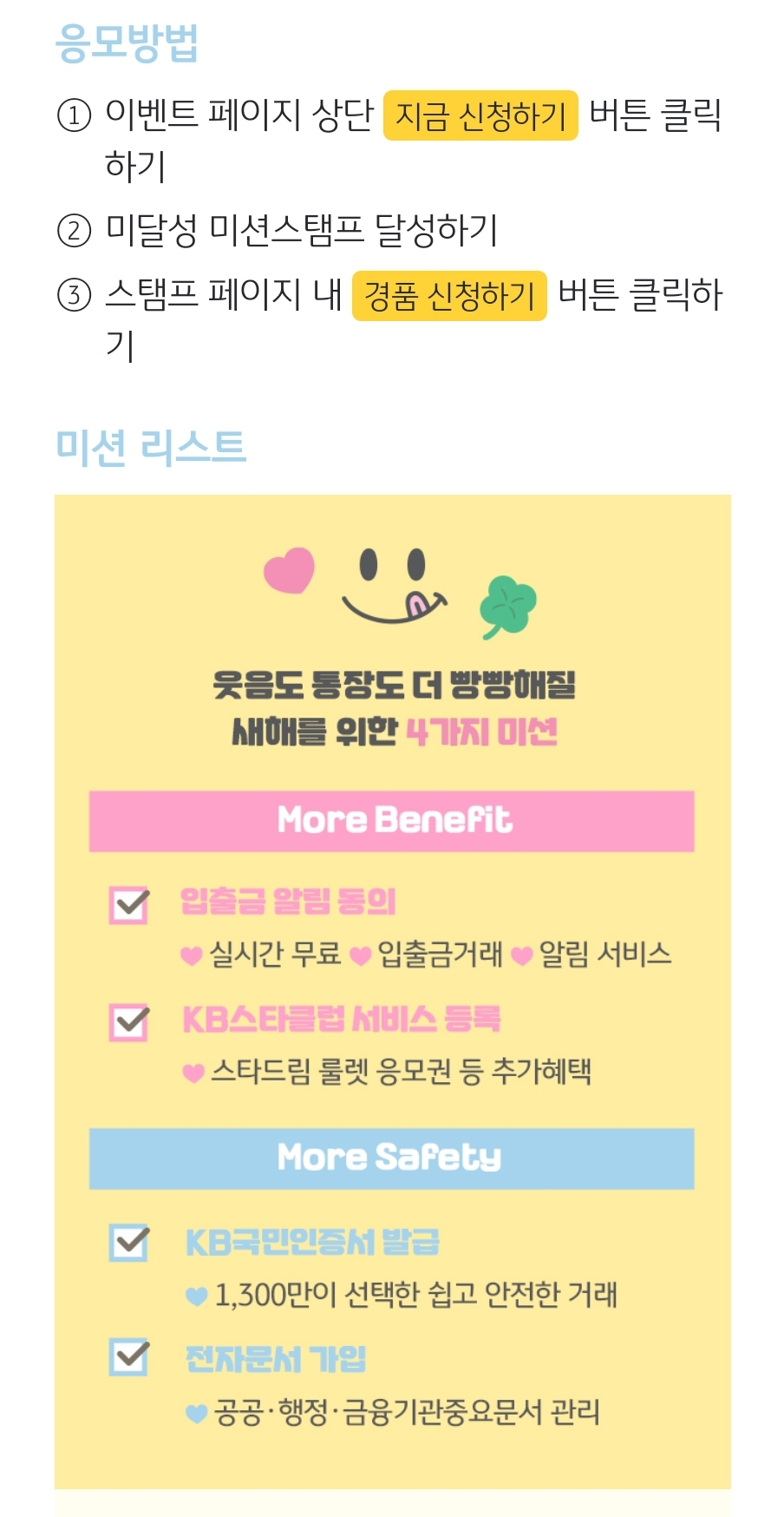 그동안 kb스타뱅킹 이벤트 많이 참여하신 분들이면 요거 4개 다 되어있을 듯 합니다😘🫶