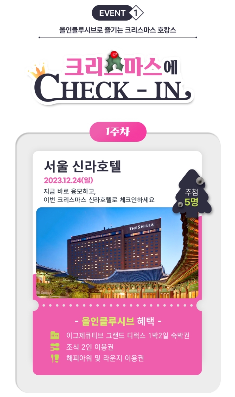 [우리은행] 이벤트명: 크리스마스를 5성급 호텔에서~ 숙박부터 라운지까지!