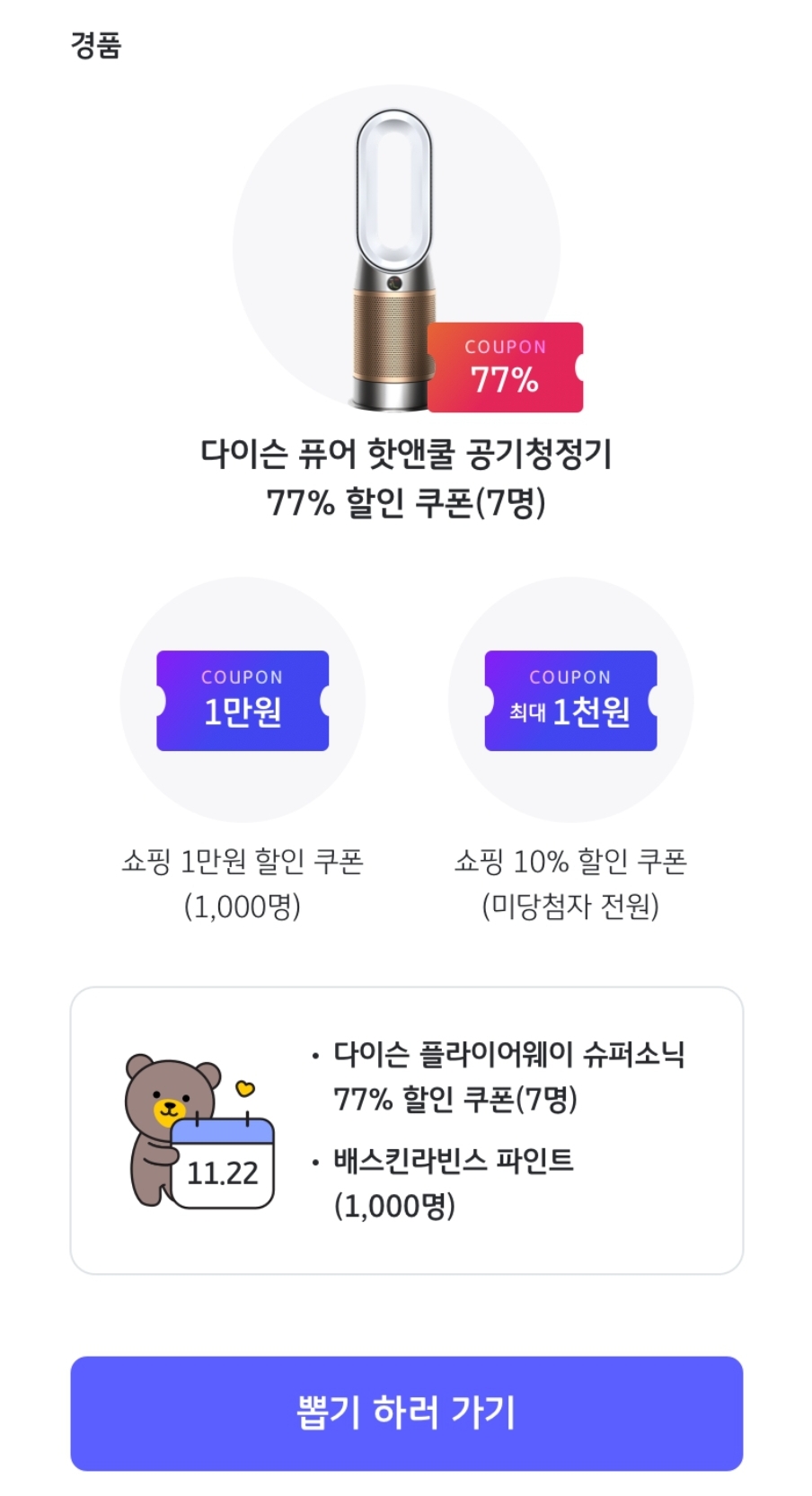 다이슨 공기청정기 77%할인 쿠폰보다 베스킨라빈스 파인트가 더 좋은 느낌 ㅋㅋ