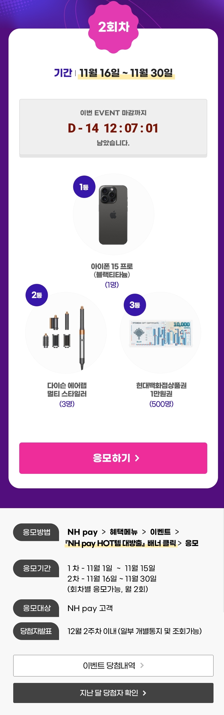 NH pay 앱 > 혜택 > 이벤트 > NH pay Hot템 대방출 배너클릭 > 응모