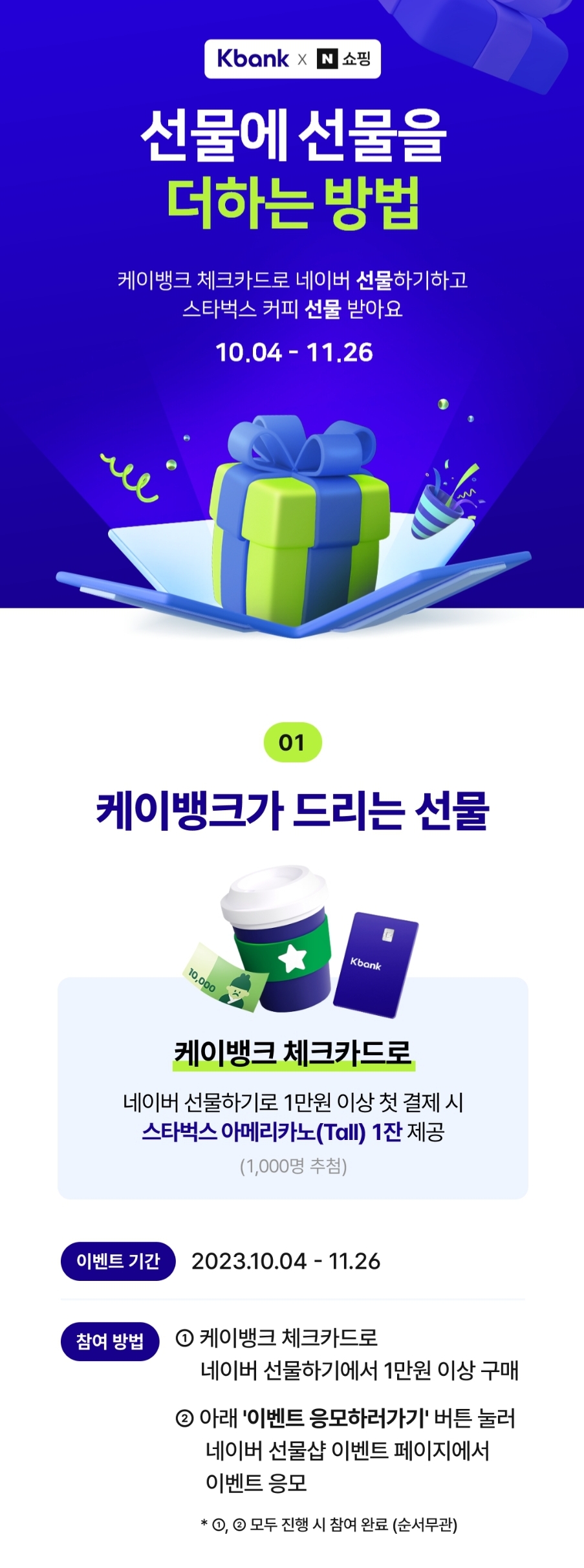 케이뱅크 체크카드로 선물하면 스타벅스 아메리카노 드려요!