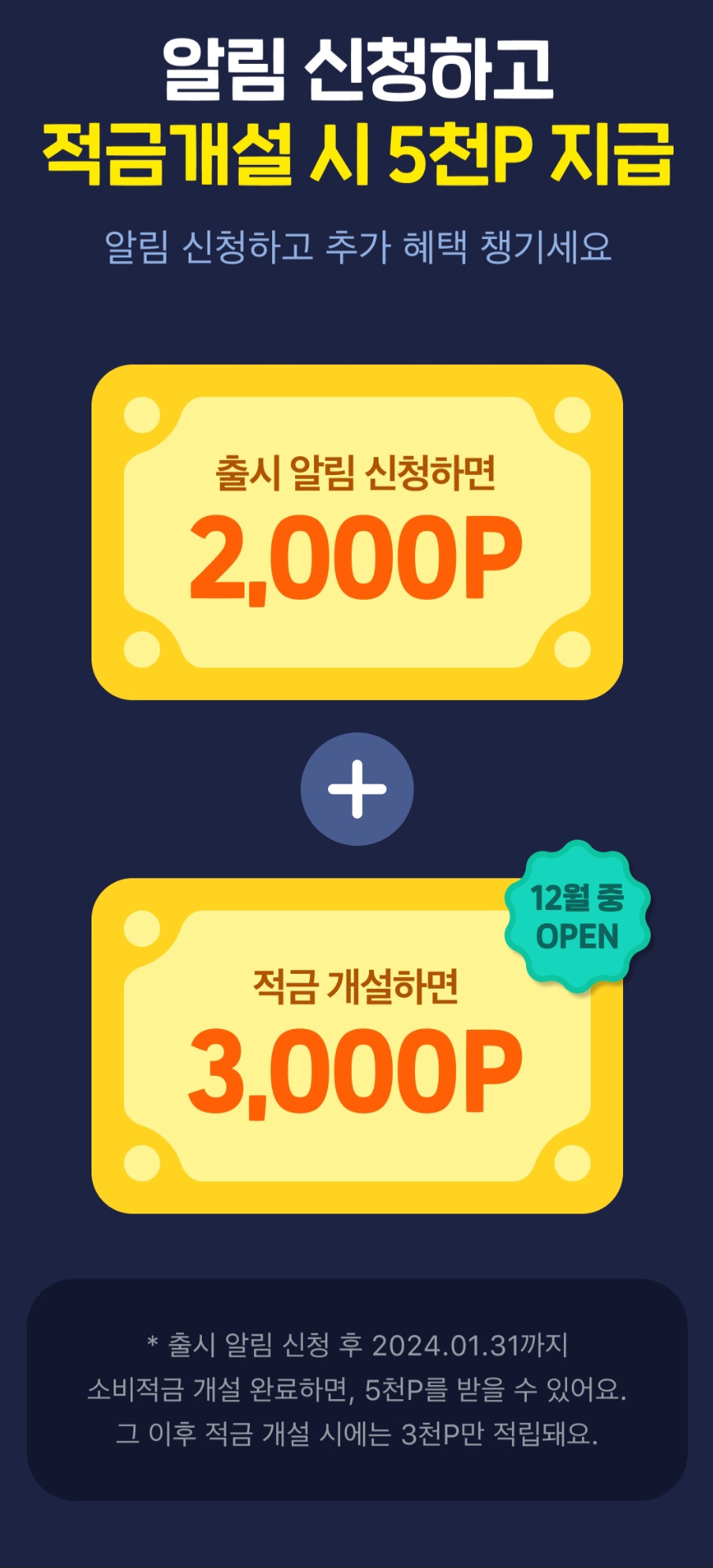 * 24년 1월 31일까지 개설해야 5000포인트 받고, 그 이후에는 3,000포인트만 주네요
