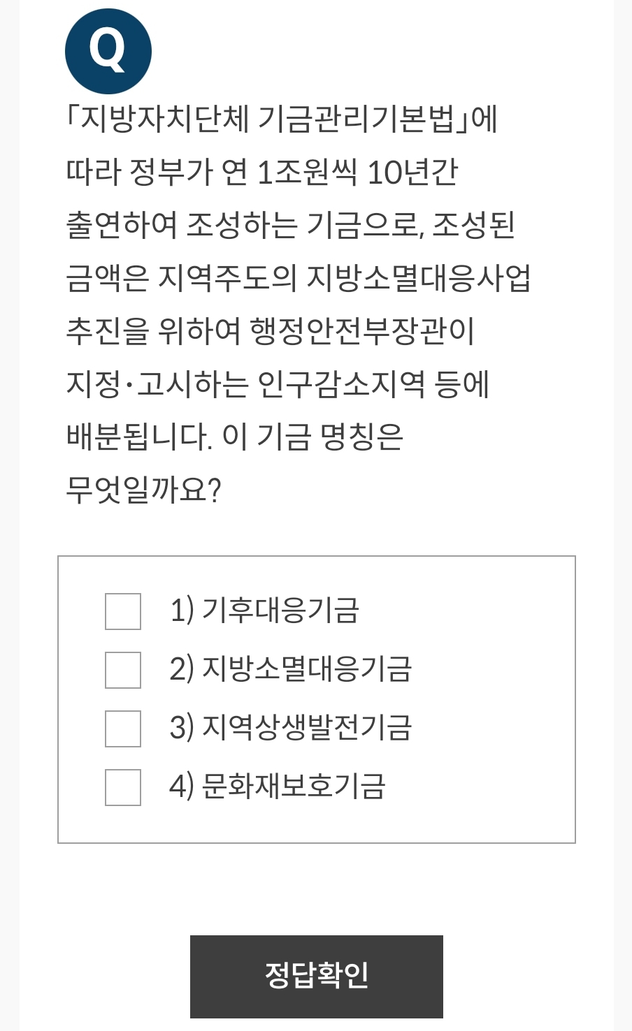 카테고리 없음 [국회예산처] 퀴즈 맞추고 커피 기프티콘 당첨되세요 (~11.30) by 노랑킹콩 2023. 11. 22. 로그인 ❌️정답 : 2번 https://www.nabo.go.kr/Sub/01Report/04_02_Development.jsp 국회예산정책처재정퀴즈는 재정, 경제 관련 퀴즈를 풀면서 우리나라 재정에 대한 이해와 관심을 높이고자 마련되었습니다. 퀴즈는 1개월 주기로 갱신되며, 매회 정답자를 추첨하여 모바일 커피쿠폰을 드리고 www.nabo.go.kr 공유하기 게시글 관리 노랑킹콩의 여행 댓글