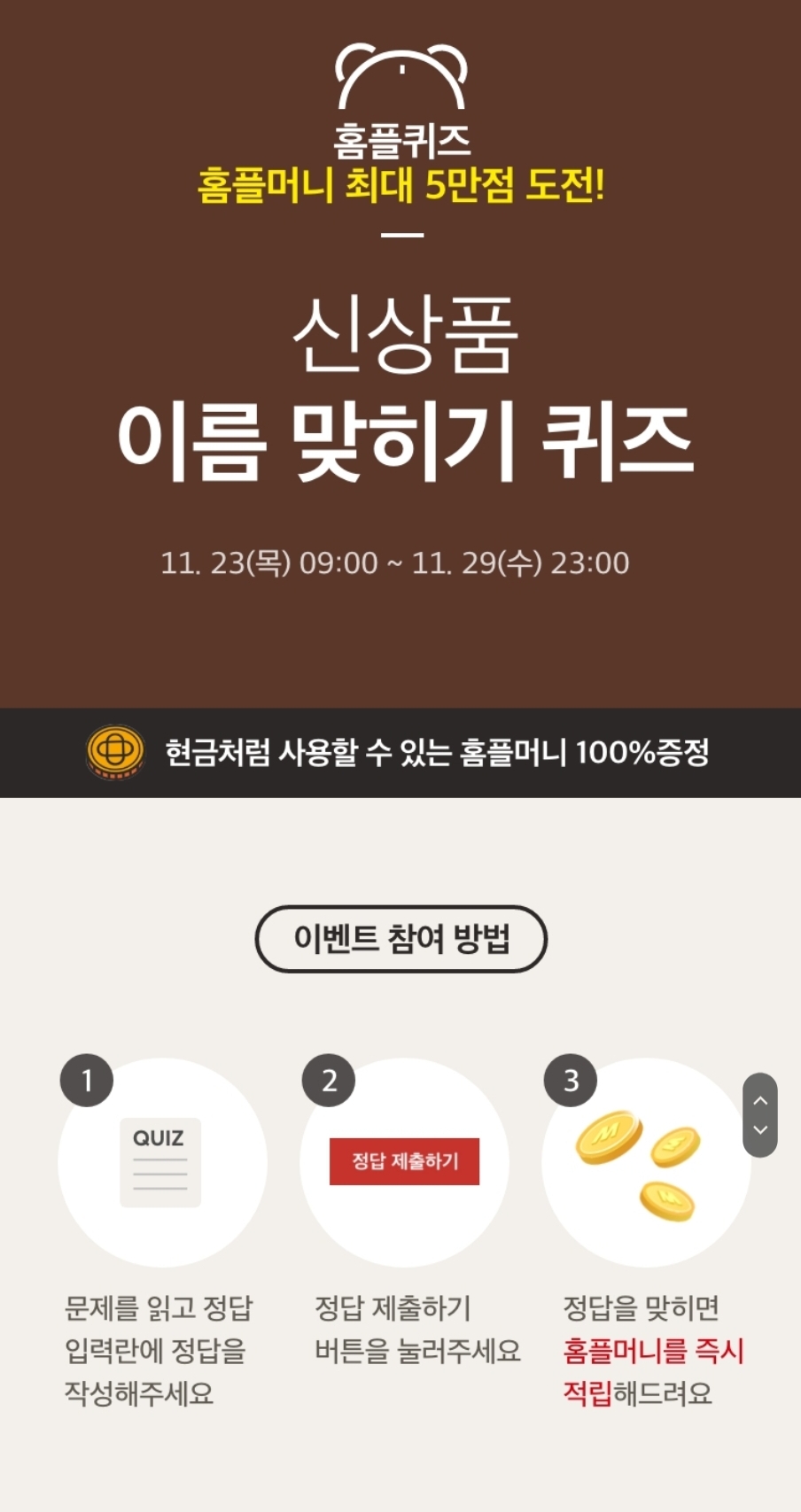 카테고리 없음 [홈플러스] 퀴즈 맞추고 홈플머니 받으세요 (~11.29) by 노랑킹콩 2023. 11. 23. 로그인 ⭕️정답 : 무화과밤마니식빵 https://my.homeplus.co.kr/event/quiz?quizNo=1735 마이홈플러스마이홈플러스my.homeplus.co.kr 공유하기 게시글 관리 노랑킹콩의 여행 댓글