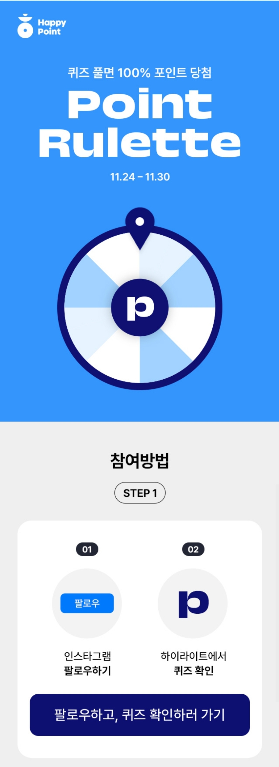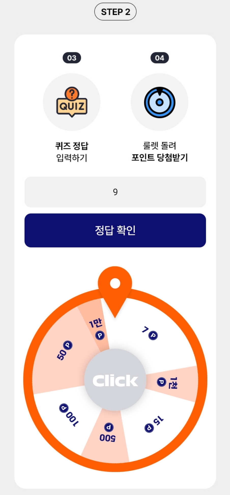 100% 포인트 당첨 퀴즈 풀고 1만P 룰렛 도전!