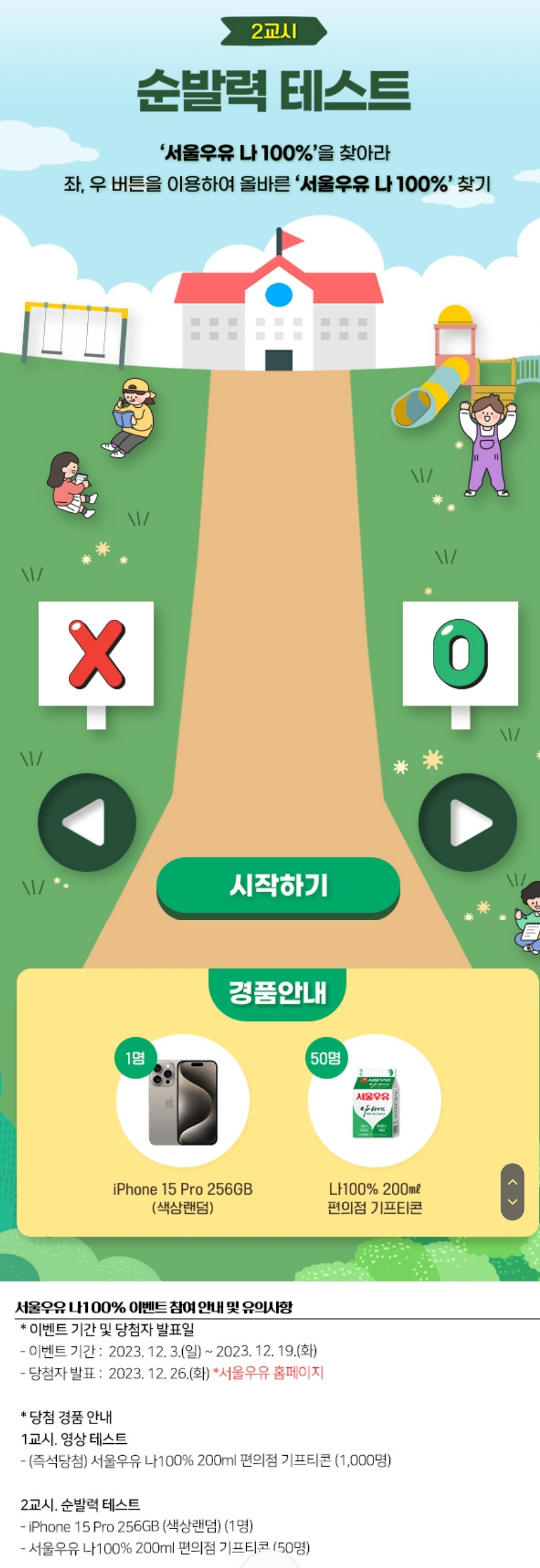 로그인 ❌️ 정답 : 신효소공법 매일 1일 3회 가능/ 공유시 1회 추가 https://promotion.seoulmilk.co.kr:446/event/202312_comfortMilk 내 속이 편안한 우유 “편안해지길 바래!” 이벤트서울우유 내 속이 편안한 우