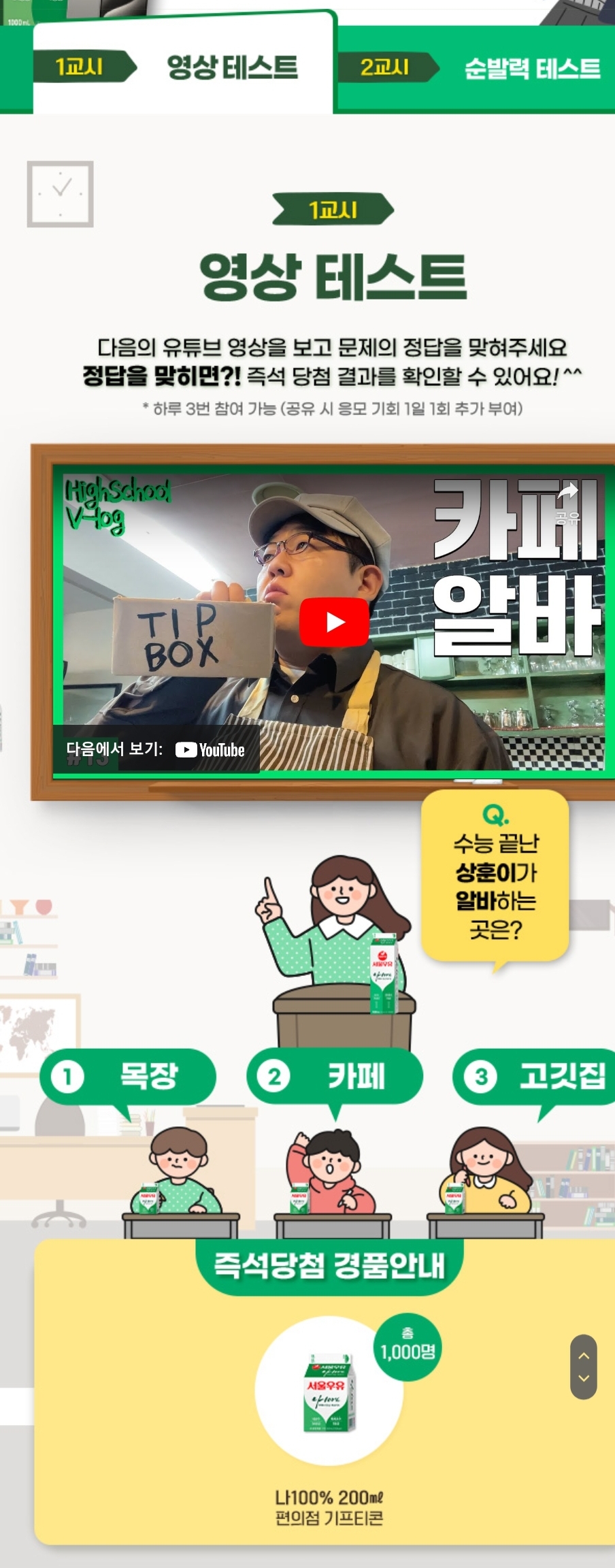 [서울우유] 영상 60초 보고 우유 우유 기프티콘 당첨되세요 (~12. 21)