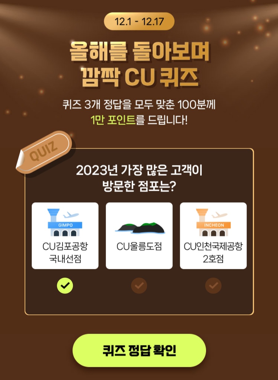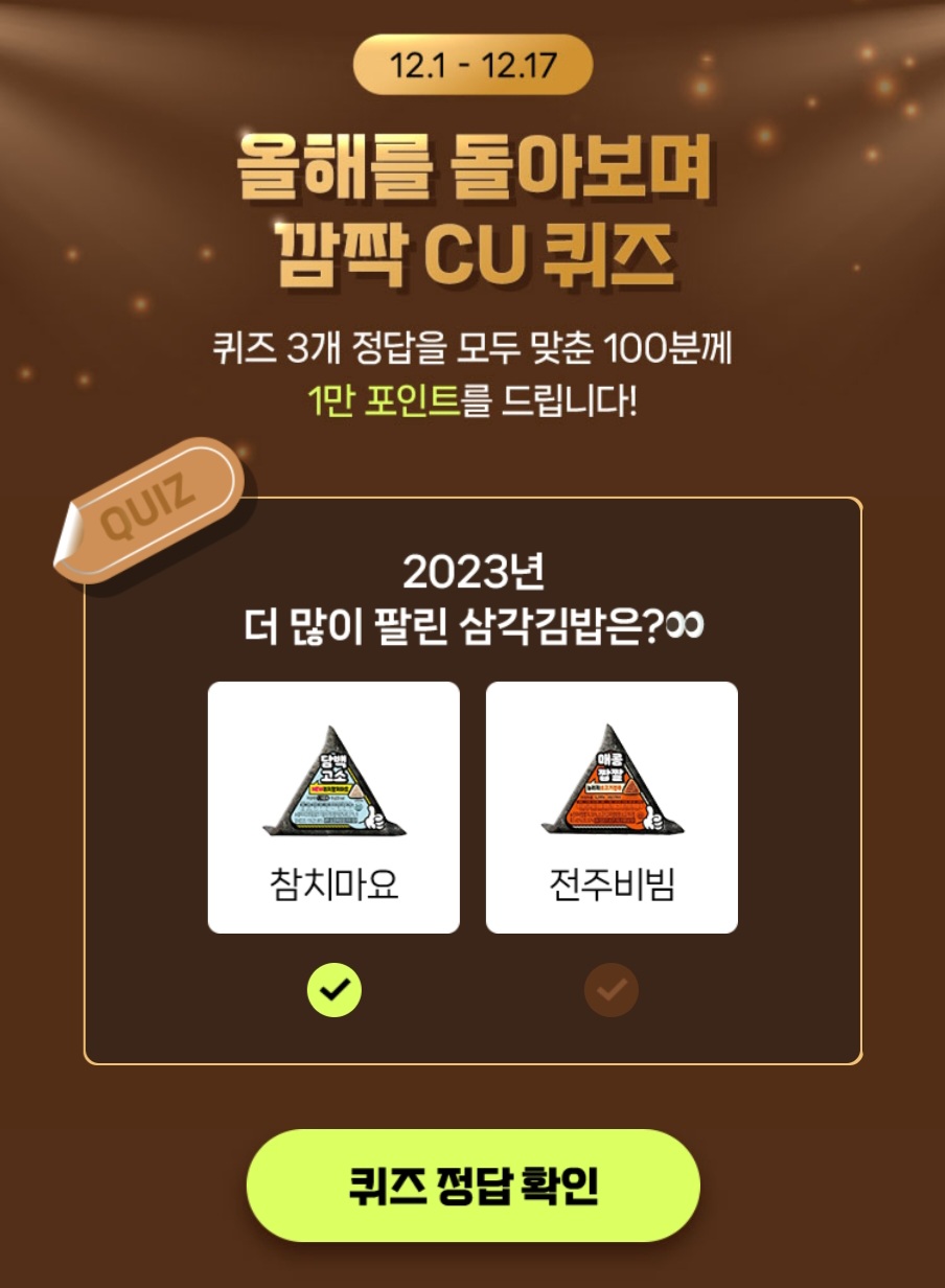 정답 : 참치마요 / 오후 6시~9시 / cu 김포공항 국내선점