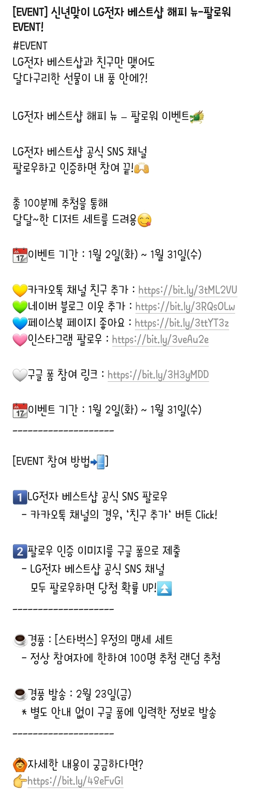 [EVENT] 신년맞이 LG전자 베스트샵 해피 뉴-팔로워 EVENT! 달달한 선물 받고 기분 좋은 새해 시작해요
