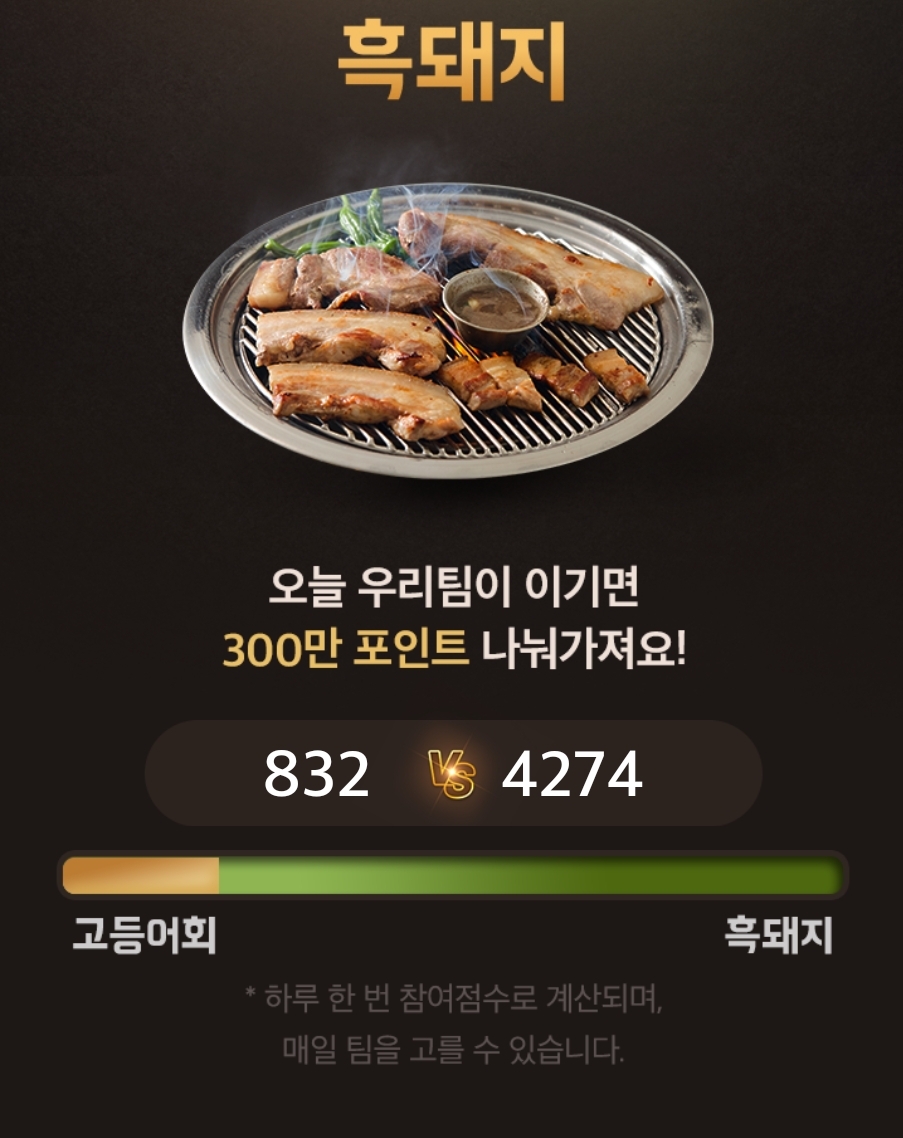 노랑킹콩은 흑돼지 선택!! ㅎㅎ