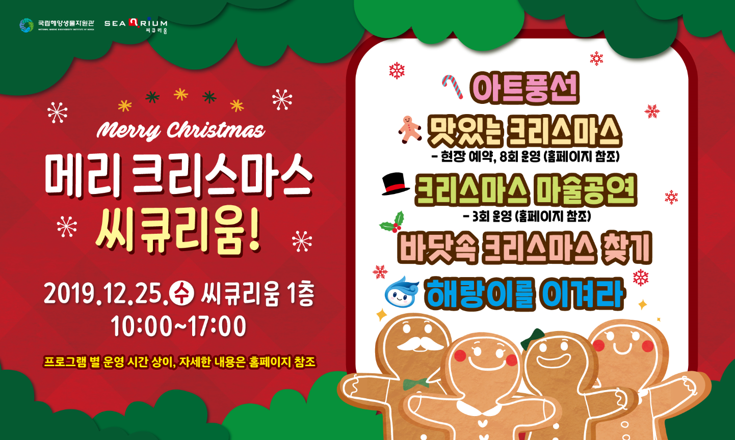프로그램 : 아트풍선, 크리스마스 마술 공연, 맛있는 크리스마스, 바닷속 크리스마스 찾기, 해랑이를 이겨라!