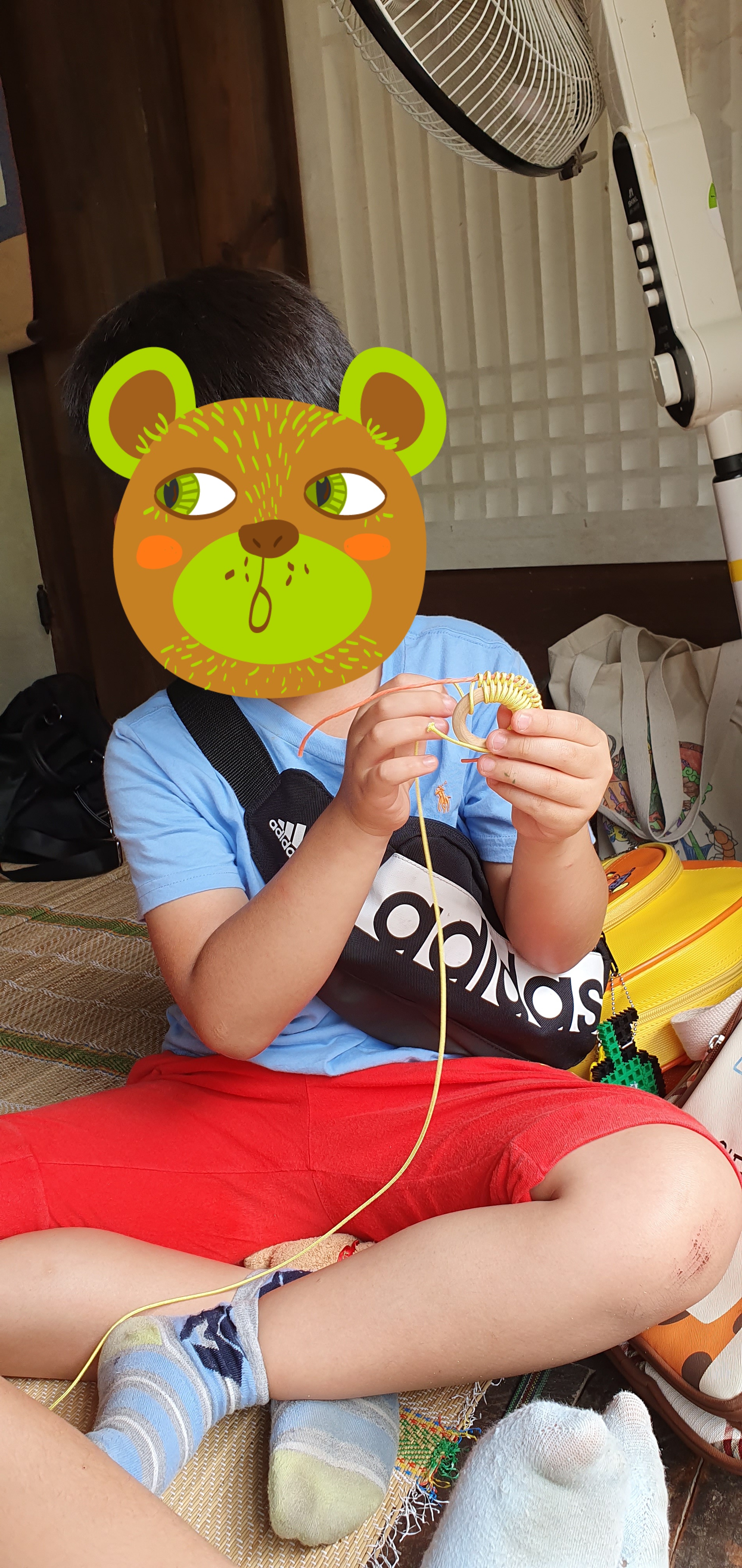 선생님들께서 가르쳐주시는 놀이도 매달 프로그램이 짜여있는데 또아리목걸이 만들기를 해봤더랬죠~