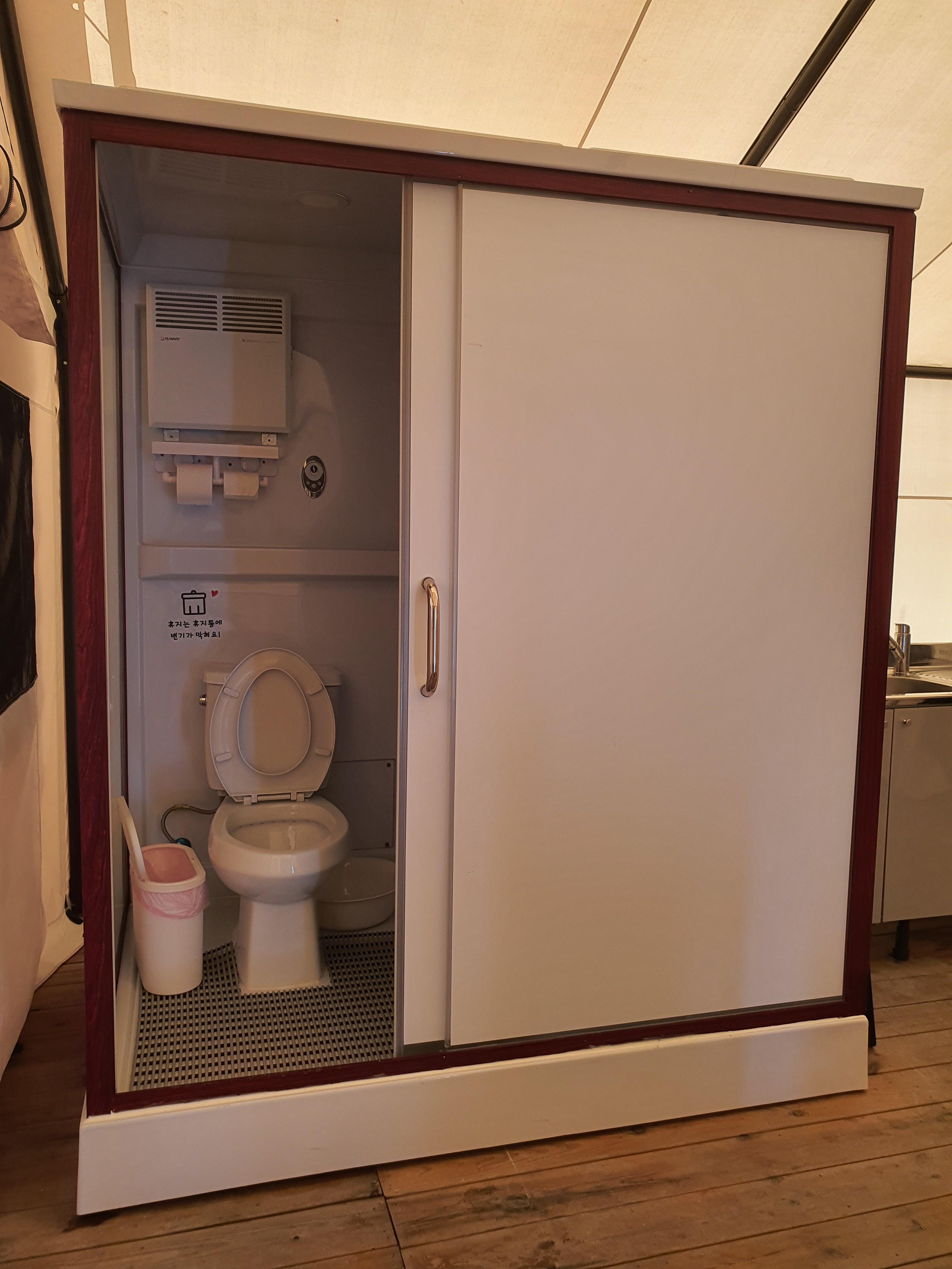 사장님께서 추울까봐 난방에 신경을 많이 쓰셨다더니 글램핑장 화장실까지 따뜻하다니요.. 엄지척입니다^^