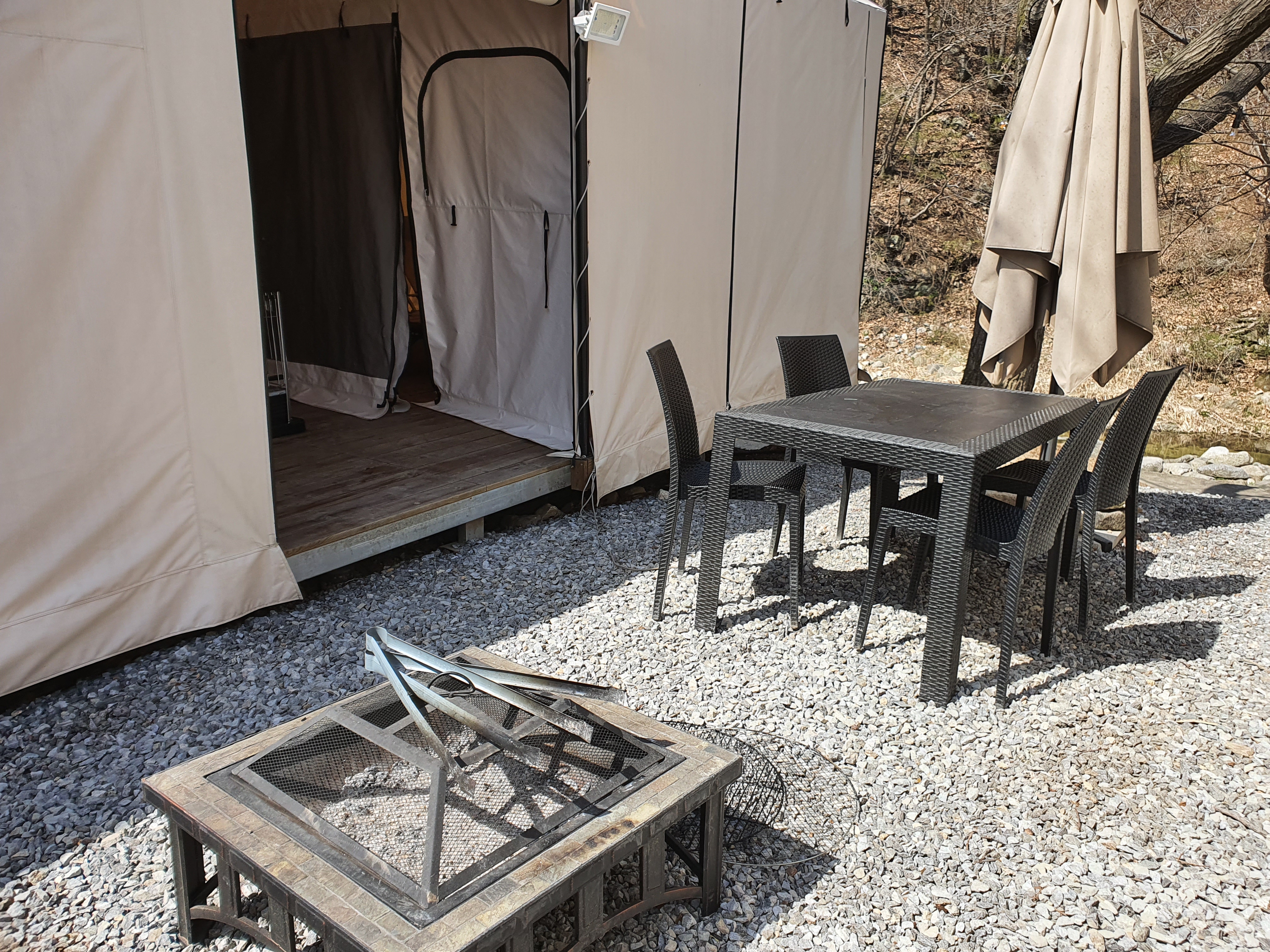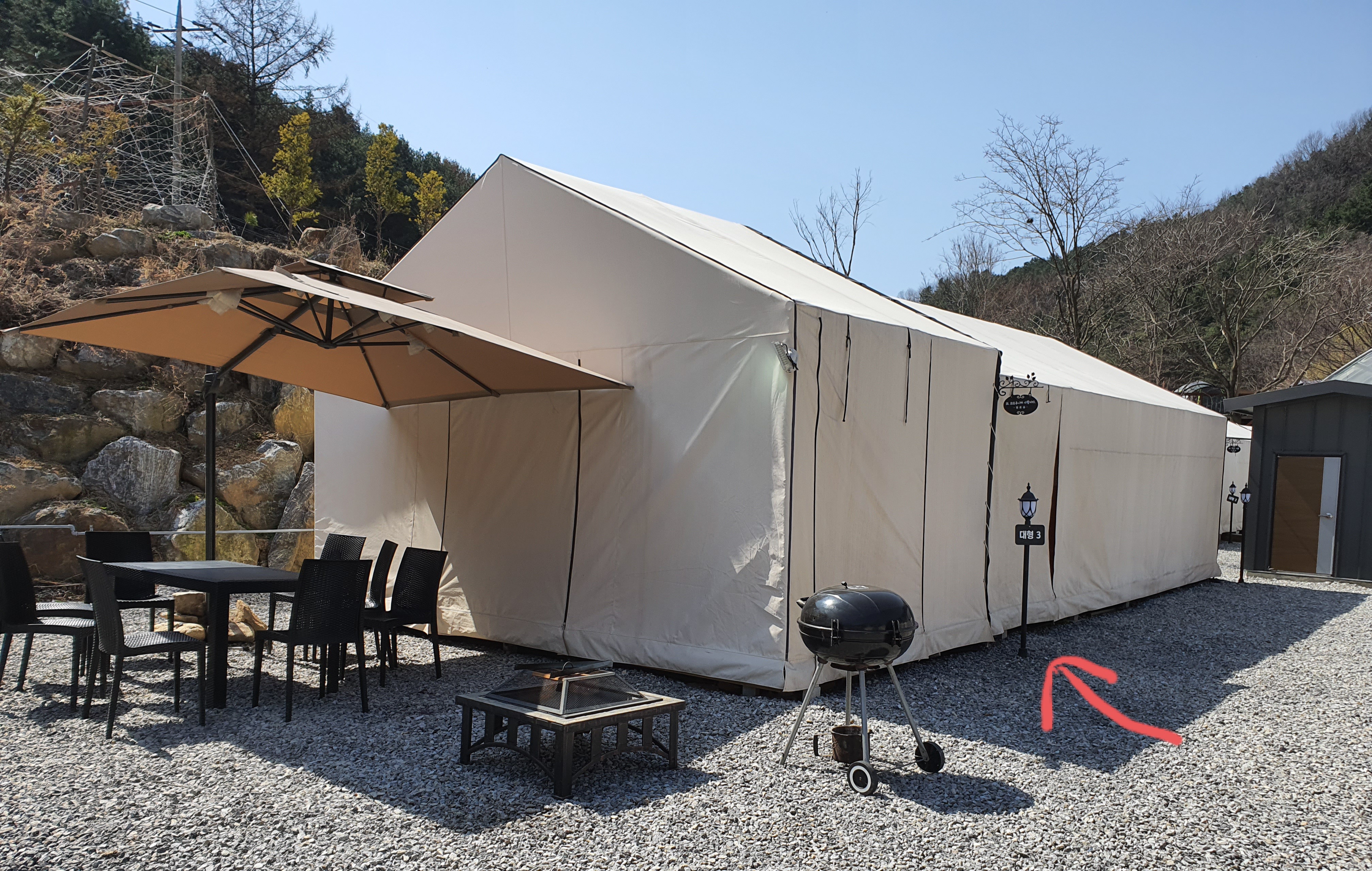 텐트안에서 고기 굽는것은 안되니 꼭 야외테이블을 이용해주셔야 한답니다.