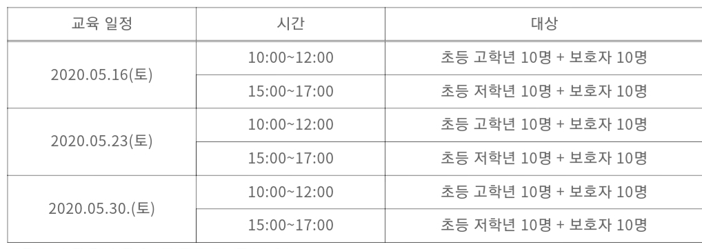 2020.05.16.(토) 교육 → 2020.05.02.(토) 오전 09:00 신청