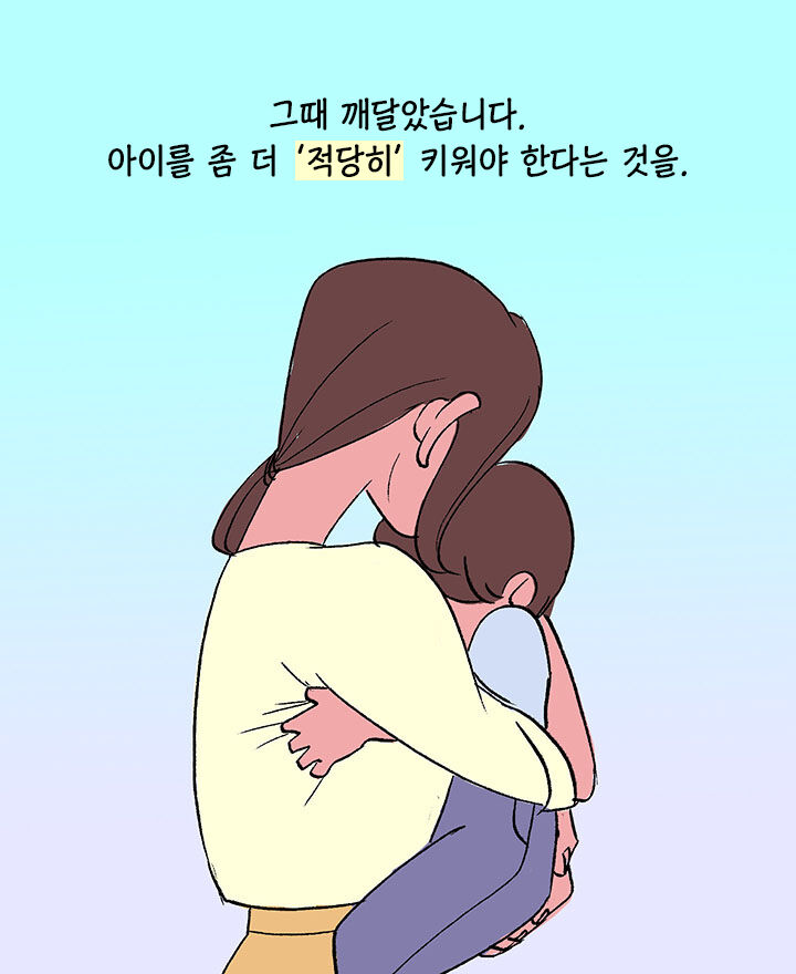 행인의 말을 듣고 엄마는 '적당히' 라는걸 깨닫습니다.
