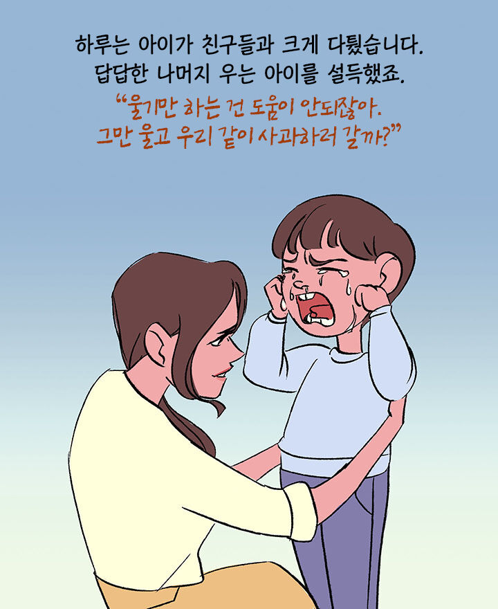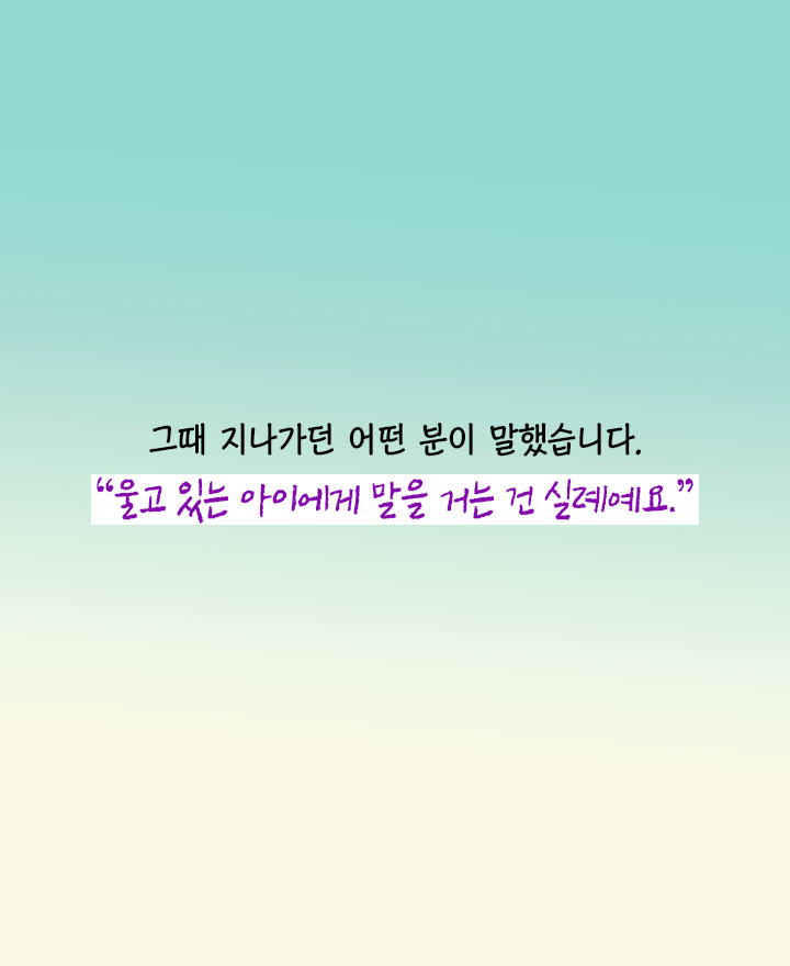 "울고 있는 아이에게 말을 거는 건 실례예요."
