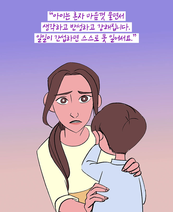 "아이는 혼자 마음껏 울면서 생각하고 반성하고 강해집니다. 일일이 간섭하면 못 일어서요."
