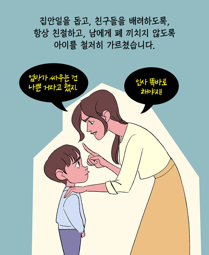 친구들을 배려하도록, 남에게 폐를 끼치지 않도록 가르쳤지만
