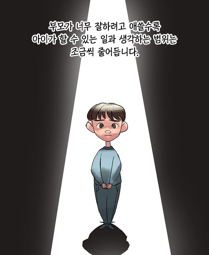 부모가 너무 잘하려고 애쓸수록 아이가 할 수 있는 일과 생각하는 범위는 줄어든다고 합니다.