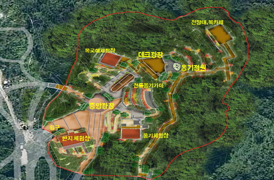 전망대 : 104㎡ 공원 정상에 위치하여 공원과 배밭 전경을 감상하고 북카페에서 독서하는 공간