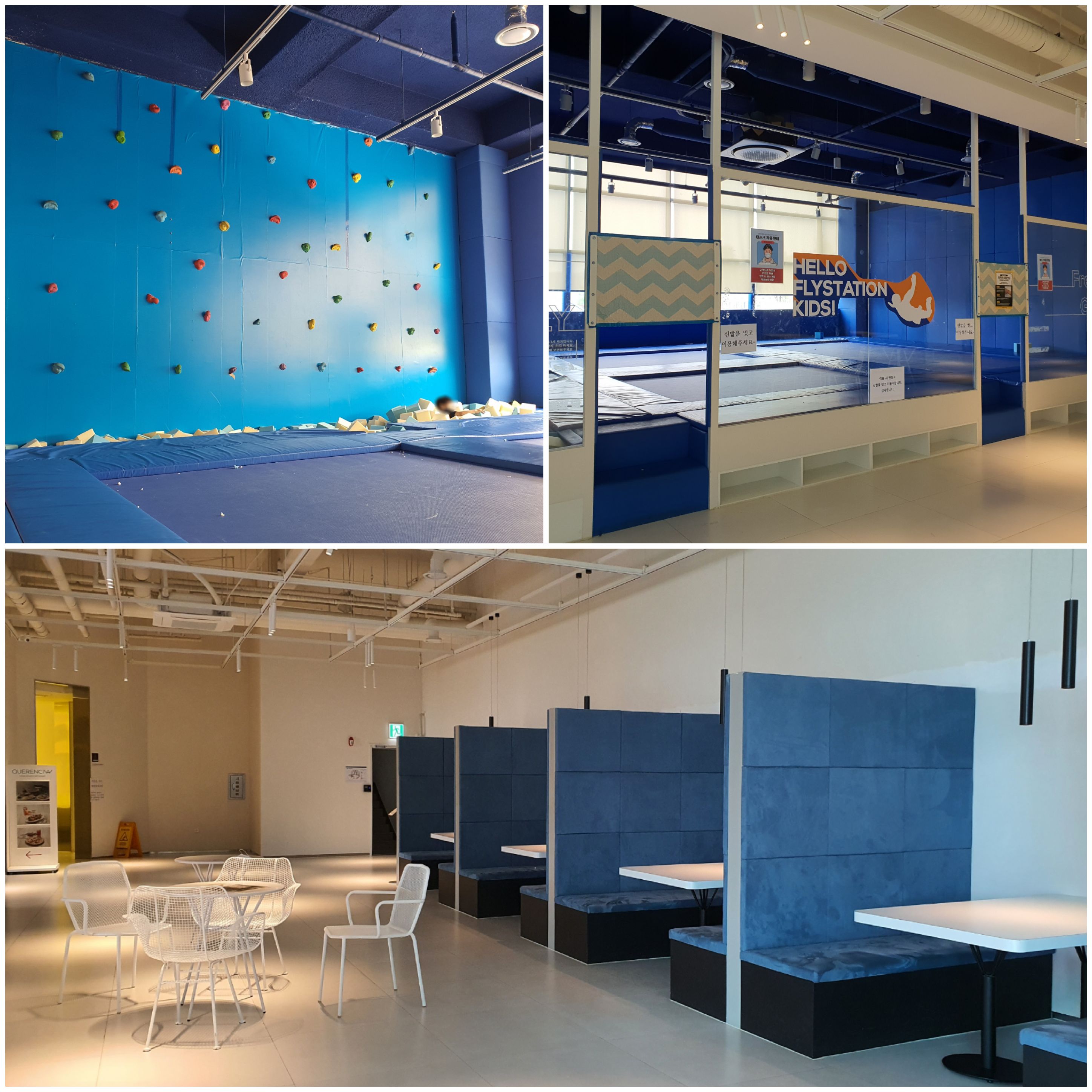 플라이스테이션은 1층에 있는 방방장과 암벽등반의 키즈존으로 아이들의 만족감을 더 높여줬어요^^