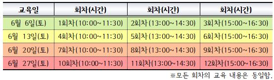 ○교육 기간 : 6. 6(토) ~27(토), 기간 중 토요일