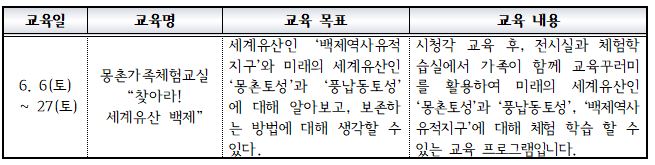 ○교 육 명 : 몽촌가족체험교실 "찾아라! 세계유산 백제"