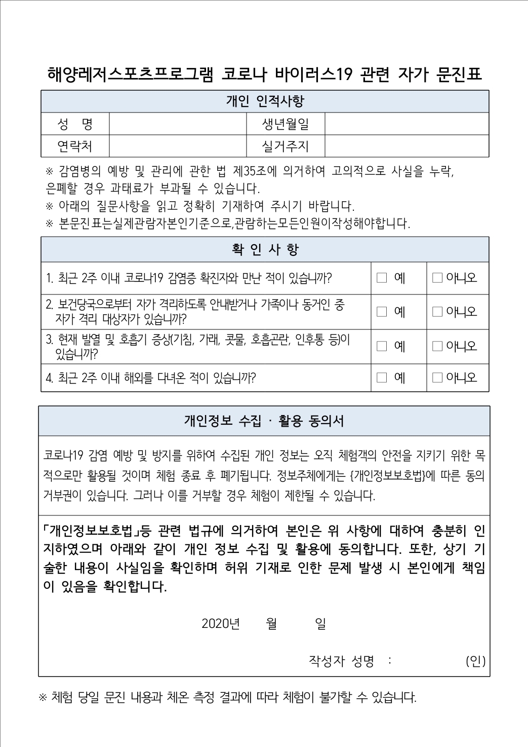 - 미리 문진표를 작성하여 오시면 빠르게 체험하실 수 있습니다.