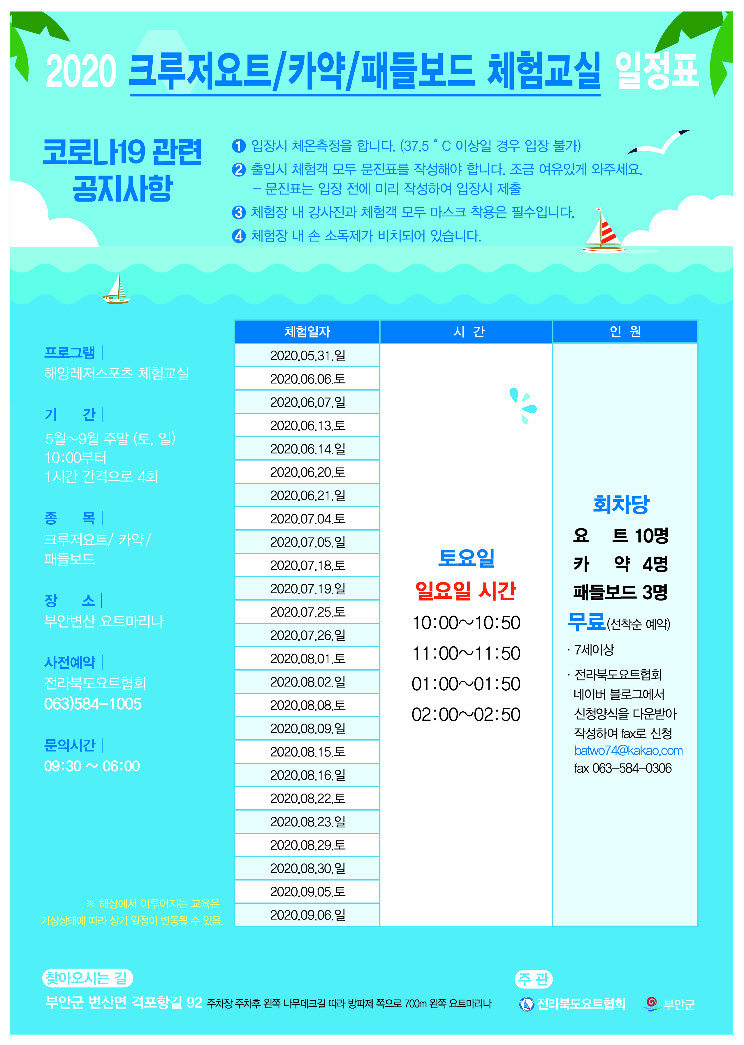 전북요트협회(☎063-584-1005) / 문의시간 09:30~18:00