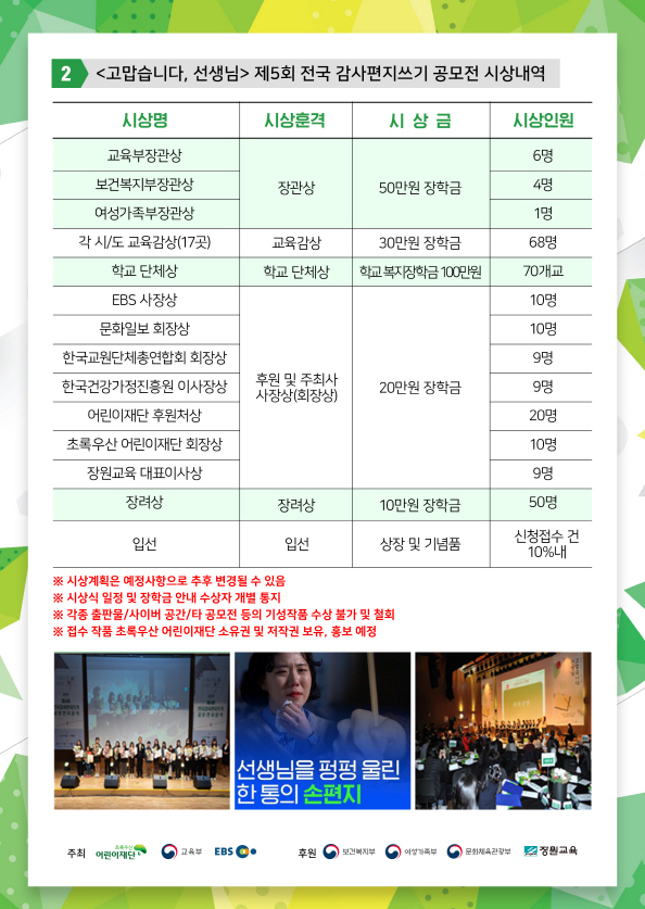 ❤ 당첨자발표 : 7월 하반기(당첨학교 감사편지 신청자에게 개별연락)