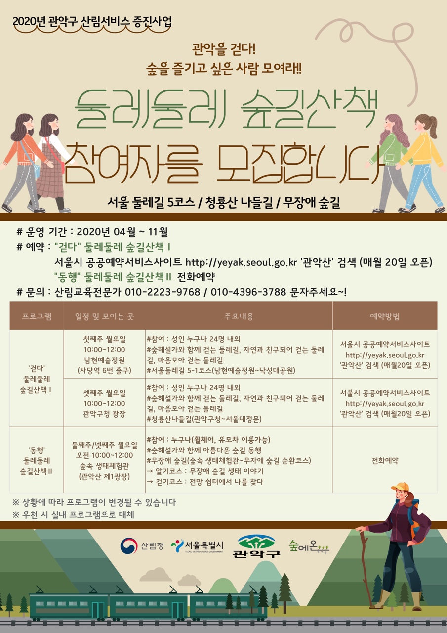 단체 예약시 : 관악구 산림교육전문가 (☎ 010-4396-3788, 010-9109-7885(문자)