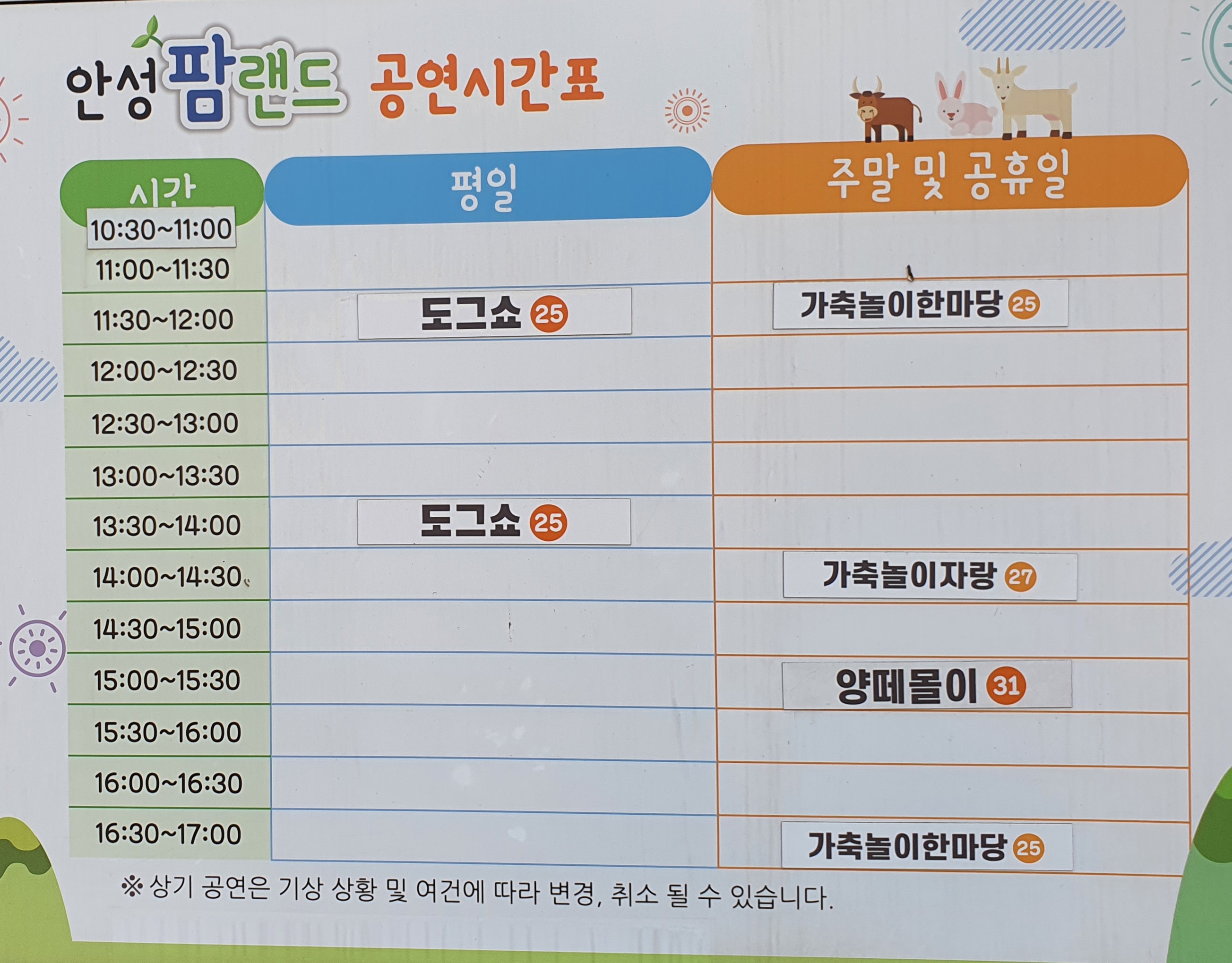# 안성팜랜드 비용과 시간 안내