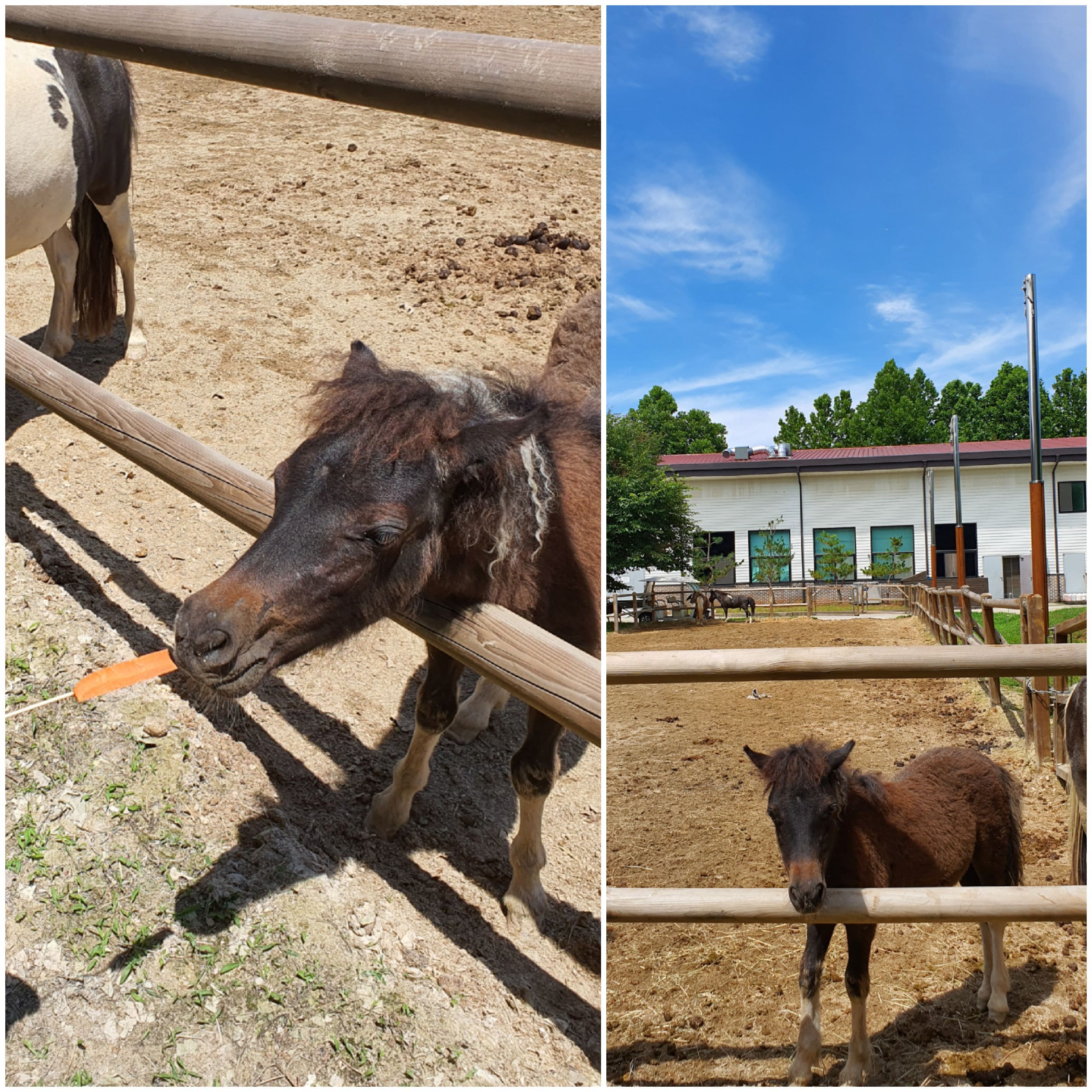 말이 큰 동물이라 노랑 아기 킹콩들 뿐만아니라 엄마킹콩 또한 무서워 한번도 만져보지 못했는데 안성팜랜드 말들이 워낙 순둥이여서 저도 용기내어 만져보았어요~