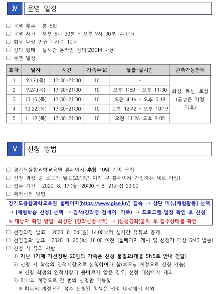 가. 경기도 융합 과학교육원 홈페이지 추첨 회당 10팀, 총 50팀 가족 새로 모집