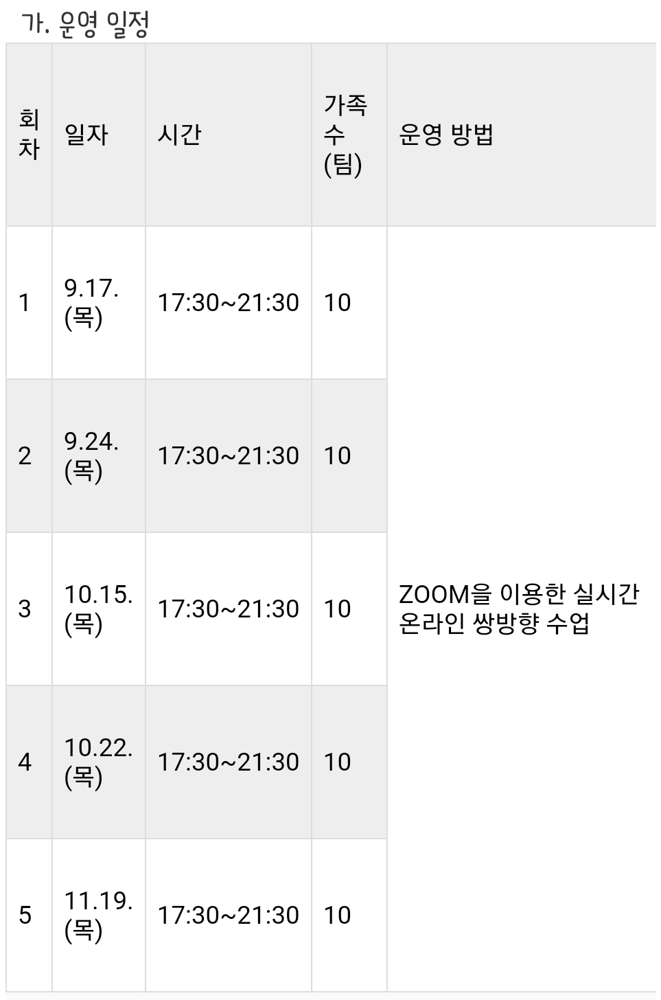 ※ 지난 1기 신청하여 선정된 20팀의 가족은 우선 선정 대상이로재신청 불필요