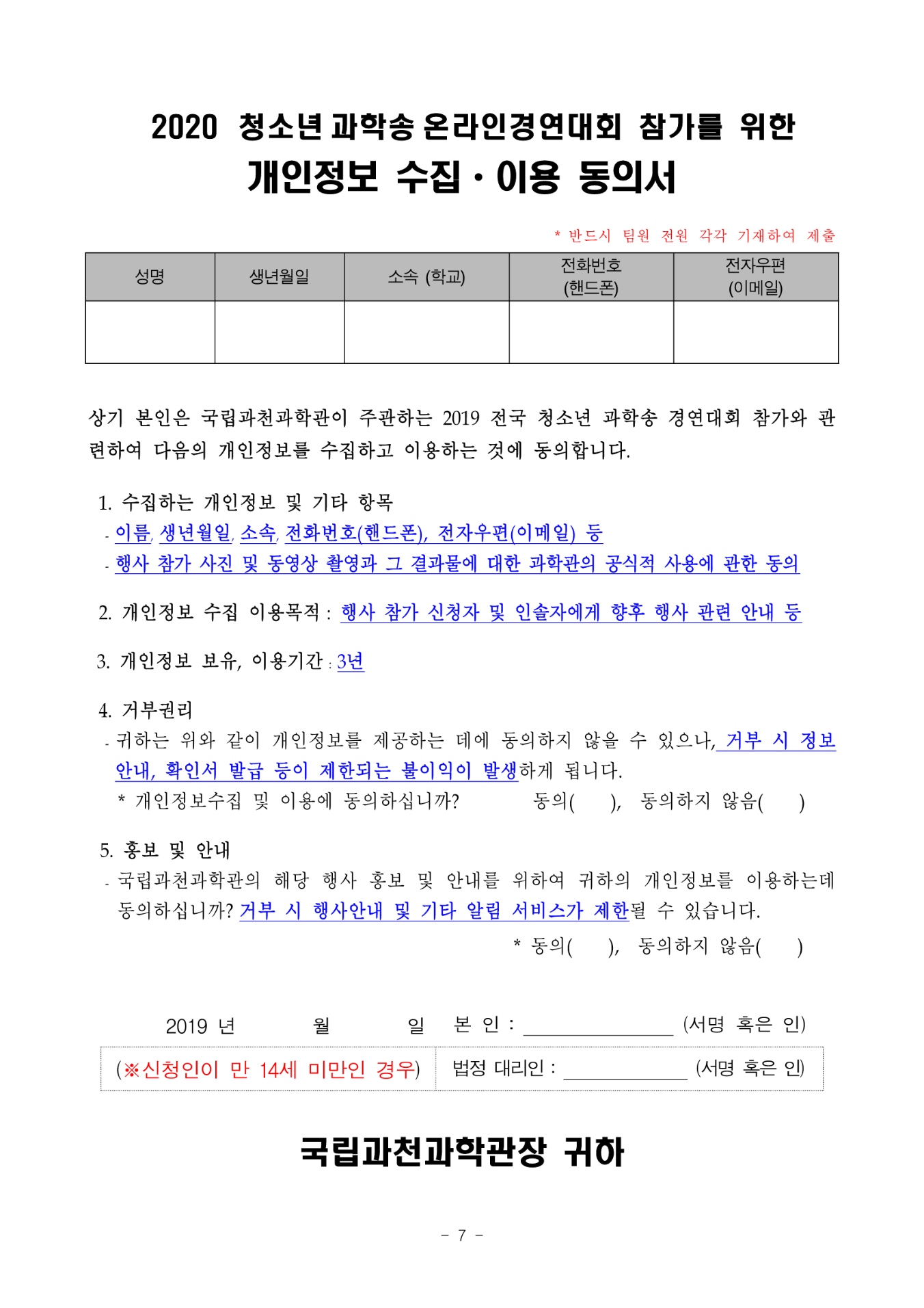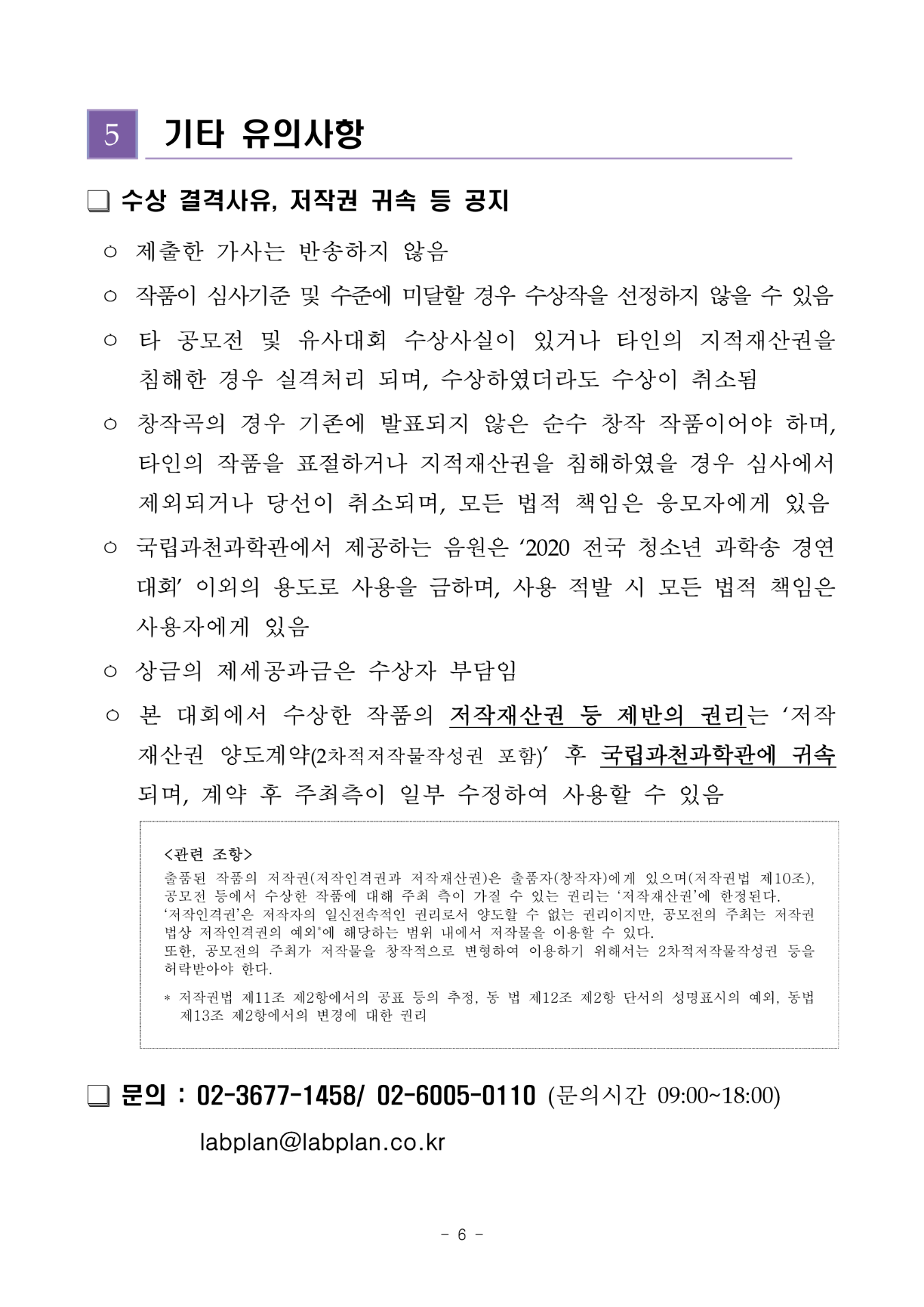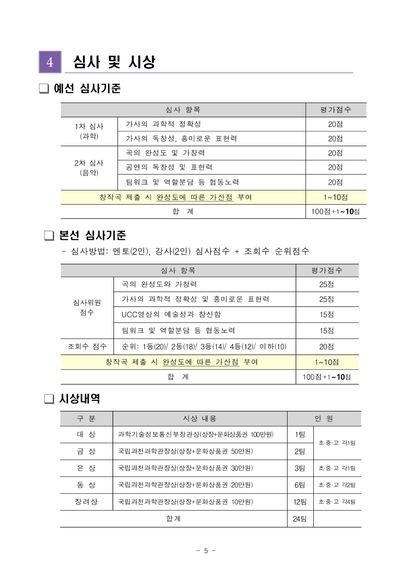 7) 시상식 : 12.5(토), 과학관 내 무관객 소규모 시상식